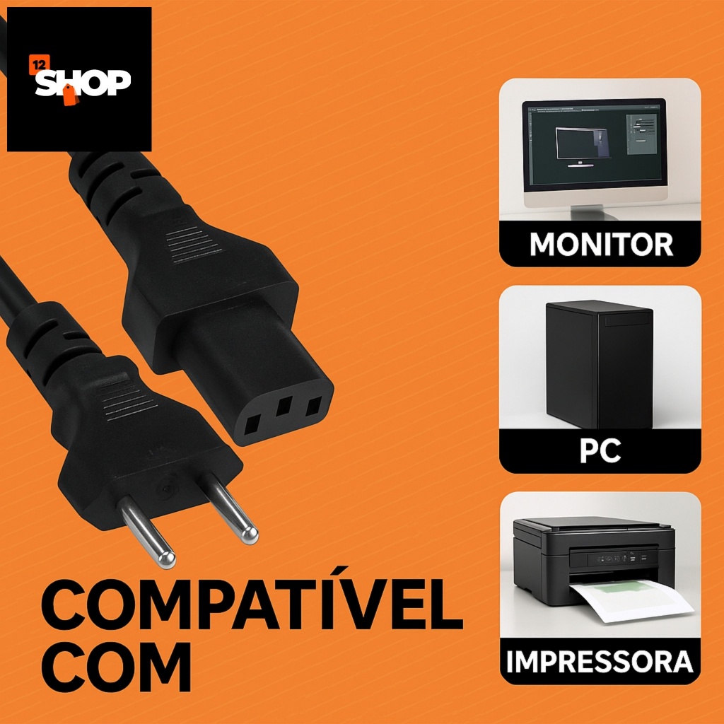 Perfeito. Segue a descrição completa, otimizada para e-commerce, sem uso de emojis. CABO DE FORÇA TRIPOLAR 1,5 METROS – 3 PINOS PADRÃO BRASILEIRO 10A – BIVOLT 110V/220V O Cabo de Força Tripolar 1,5 metros é ideal para alimentação segura e eficiente de diversos equipamentos eletrônicos. Fabricado no padrão brasileiro de 3 pinos (NBR 14136), possui excelente qualidade de construção, oferecendo conexão firme, estável e segura. Com 1,5 metros de comprimento, proporciona praticidade na instalação e organização do ambiente, permitindo maior alcance sem forçar tomadas ou conectores. É indicado para uso residencial, comercial e profissional. Compatível com equipamentos que utilizam entrada padrão IEC C13, é amplamente utilizado em computadores, monitores, impressoras e diversos dispositivos eletrônicos. CARACTERÍSTICAS PRINCIPAIS Comprimento: 1,5 metros Padrão brasileiro 3 pinos (NBR 14136) Corrente: 10A Cabo tripolar (fase, neutro e terra) Tensão: Bivolt 110V e 220V Conector padrão IEC C13 Cor: Preto Alta durabilidade e resistência COMPATÍVEL COM Computador PC Desktop Monitor Impressora TV Fonte de notebook Estabilizador Nobreak Caixa de som amplificada Videogame Projetor Equipamentos eletrônicos com entrada padrão tripolar IEC Se o equipamento possui entrada padrão de fonte semelhante à de computador (IEC C13), este cabo é compatível. SEGURANÇA E QUALIDADE O cabo tripolar possui fio terra, oferecendo maior proteção contra variações de energia e reduzindo riscos elétricos. É fabricado com material isolante resistente, que evita aquecimento excessivo e garante maior vida útil. Produto indicado para reposição de cabos danificados ou para utilização como cabo reserva. INDICAÇÃO DE USO Uso doméstico Home office Empresas Escritórios Lojas Escolas Ambientes corporativos ESPECIFICAÇÕES TÉCNICAS Tipo: Cabo de força tripolar Comprimento: 1,5 metros Corrente suportada: 10A Tensão: 110V / 220V (bivolt) Padrão: Brasileiro NBR 14136 Conector: IEC C13 Cor: Preto PALAVRAS-CHAVE MAIS BUSCADAS NO E-COMMERCE cabo de força 3 pinos cabo tripolar 1,5m cabo de energia para pc cabo para monitor cabo de força para impressora cabo padrão brasileiro 10a cabo de força 110v 220v cabo de energia computador cabo fonte pc cabo de força tripolar bivolt cabo de energia 1,5 metros cabo tomada 3 pinos cabo para fonte atx cabo de força para tv cabo de energia padrão brasileiro CONTEÚDO DA EMBALAGEM 01 Cabo de Força Tripolar 1,5 Metros Produto com excelente custo-benefício, compatibilidade ampla e segurança para seus equipamentos eletrônicos.