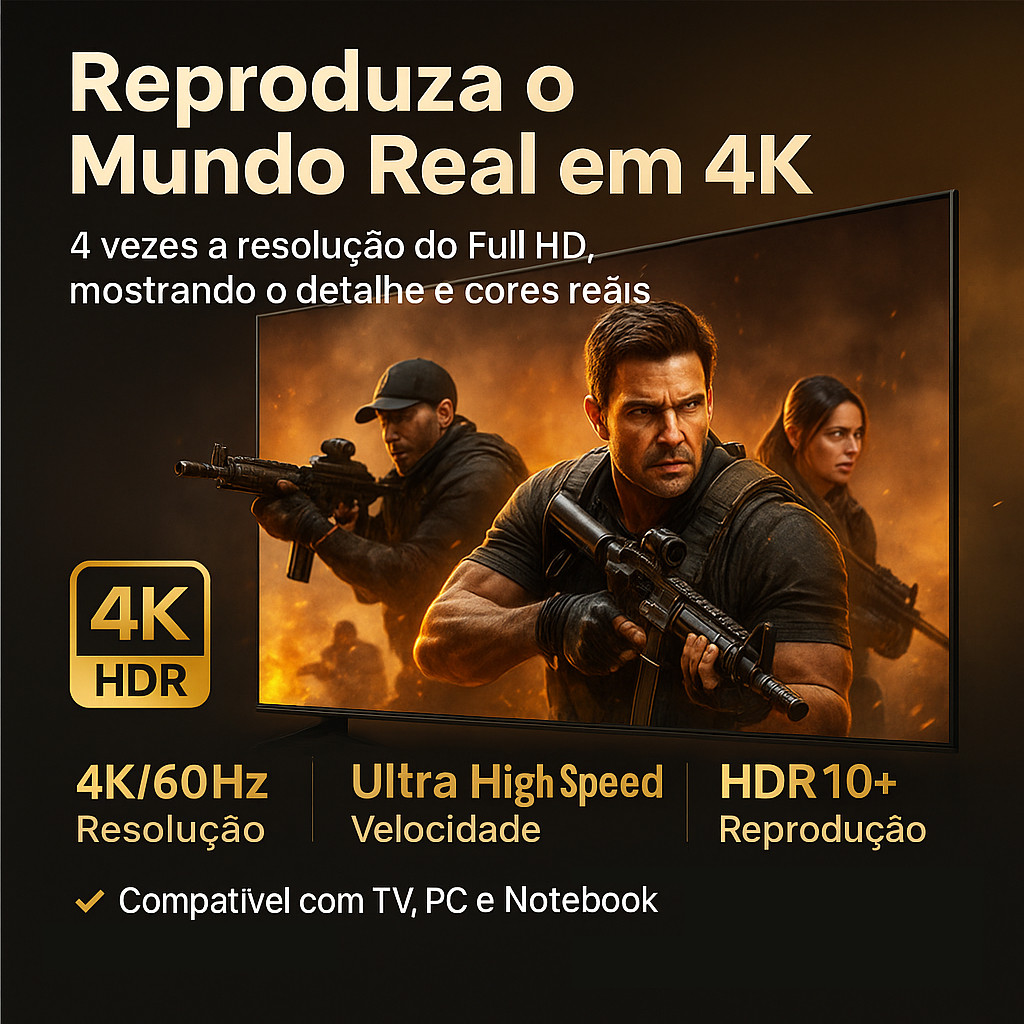 🖥️ Desfrute de Imagem e Som Perfeitos com o Cabo HDMI 4K Ultra HD! O Cabo HDMI 1 Metro é a escolha ideal para quem busca alta qualidade de transmissão de áudio e vídeo. Com suporte para resolução 4K Ultra HD (3840x2160 pixels), este cabo garante imagens nítidas e cores vibrantes, perfeito para conectar computadores, notebooks, TVs, projetores e outros dispositivos compatíveis. ✅ Principais Benefícios: ✔ Resolução 4K Ultra HD - Imagens ultra nítidas e realistas ✔ Alta Velocidade de Transmissão - Sem perda de qualidade de sinal ✔ Compatibilidade Universal - Funciona com TVs, PCs, notebooks, projetores e mais ✔ Construção Durável - Design robusto para maior vida útil ✔ Fácil Instalação - Plug and play, sem necessidade de configurações 🔧 Especificações Técnicas: Comprimento: 1 metro Resolução: 4K Ultra HD (3840x2160) @ 60Hz Versão HDMI: Ultra High Speed Conectores: HDMI macho x macho Compatibilidade: Todos dispositivos com entrada HDMI 💡 Ideal Para: Assistir filmes e séries em 4K Jogar videogames com alta qualidade gráfica Apresentações profissionais em projetores Conexão de computadores a monitores 4K 🎯 Por Que Escolher Nosso Cabo HDMI? Garantia de qualidade e desempenho Transmissão estável sem interferências Preço acessível com qualidade premium 🛒 Garanta Já o Seu! Eleve sua experiência audiovisual com o Cabo HDMI 1 Metro 4K Ultra HD - qualidade profissional para seu entretenimento! ✏️ Pronto para uso! Dúvidas? Estamos à disposição.