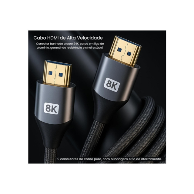 | Cabo HDMI 2.1 8K 60Hz 4K 120Hz Ultra HD 48Gbps 1.8 Metros Blindado ... este produto | R$ 25,48 | 2% | 4.9/5 | 108 |