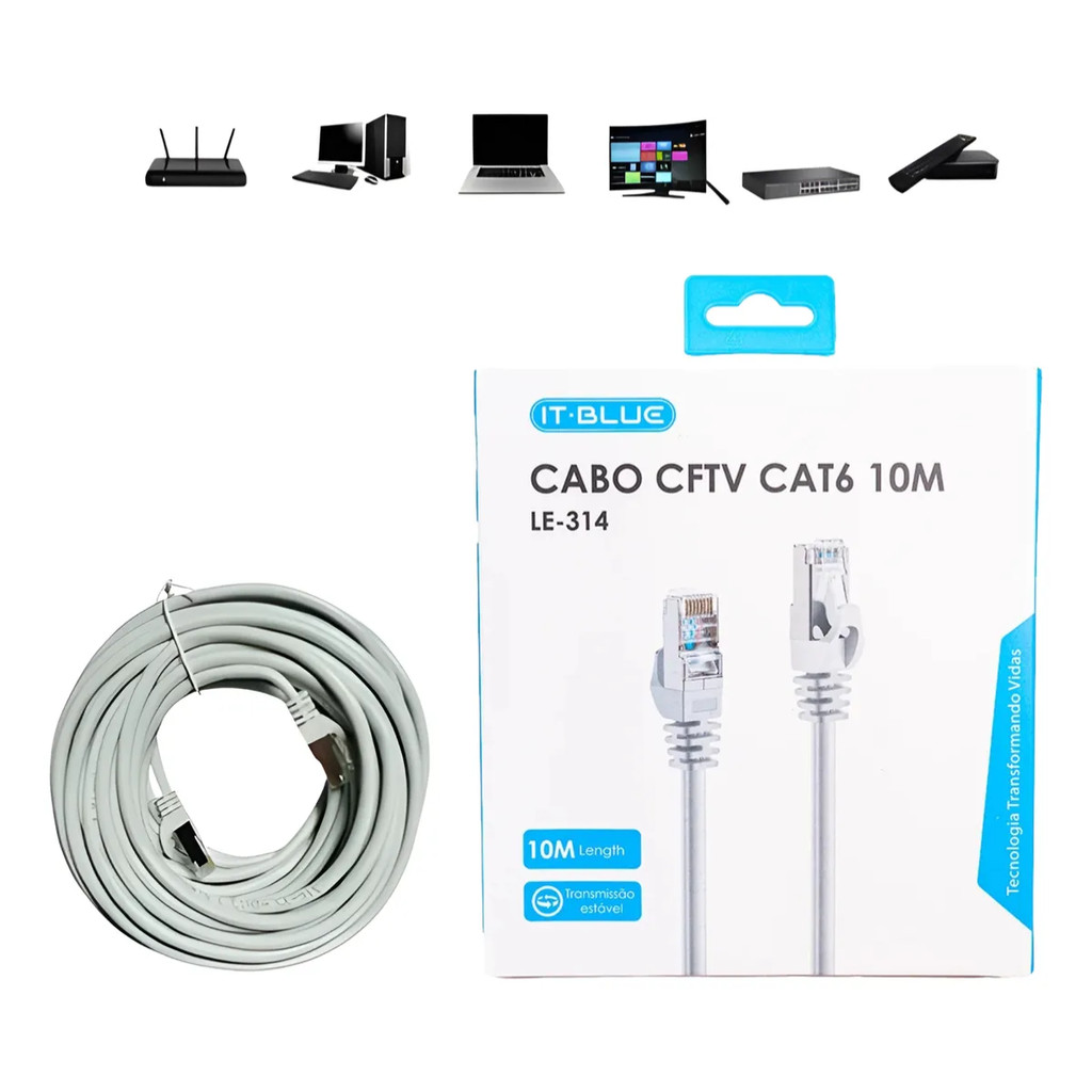 Cabo Lan Cftv Cat6 10 Metros Conector Rj45 Blindado Estável