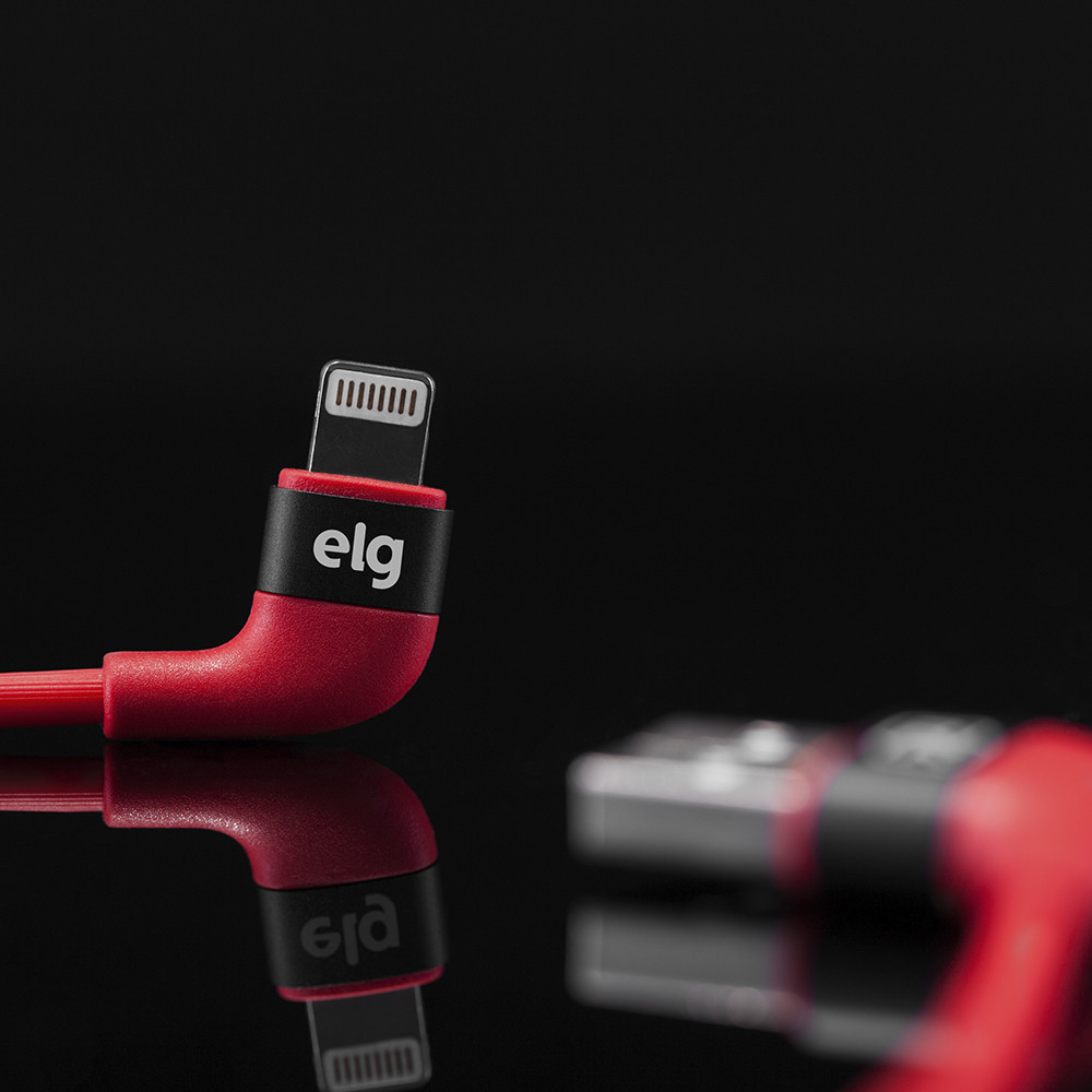 Cabo Lightning, Sincronização e Recarga 12W 2.4A, Conector 90°, 1 metro, Vermelho, XFT810RD, ELG