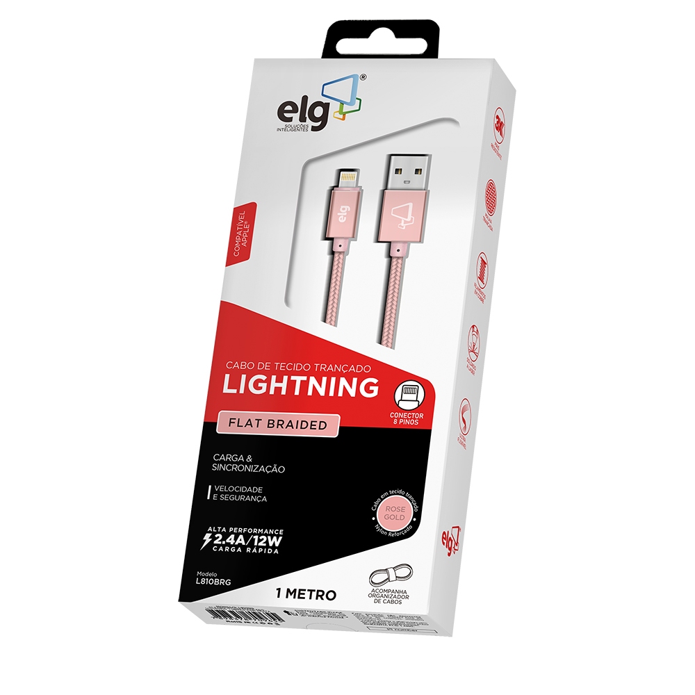 Velocidade, segurança e durabilidade: sua recarga com potência máxima. O Cabo Lightning ELG L810BRG oferece resistência, praticidade e um visual sofisticado para o dia a dia. Com 1 metro de comprimento e design flat slim em tecido trançado de nylon reforçado, evita emaranhados, garante maior durabilidade contra flexões constantes e auxilia na organização. Seus conectores metálicos em alumínio anodizado proporcionam mais segurança, robustez e acabamento premium na cor Rose Gold, unindo estilo e eficiência em um único acessório. Compatível com dispositivos Apple que utilizam entrada Lightning (iPhone, iPad e iPod), suporta corrente de 2.4A e potência de até 12W, oferecendo recarga rápida, segura e sincronização de dados em alta velocidade. Características Técnicas: Compatibilidade: dispositivos Apple com porta Lightning (8 pinos) Comprimento: 1 metro Conector: Lightning (8 pinos) Cor: Rose Gold Corrente: 2.4A Potência: 12W Fabricação: cabo flat slim em tecido trançado de nylon e conectores metálicos blindados Extras: mais durável e resistente a flexões, praticidade no uso, permite carga, sincronização e transferência de dados, compatível com portas USB de notebook, computador, carregadores de parede ou veicular IMPORTANTE :: As imagens dos produtos são meramente ilustrativas e podem apresentar pequenas variações de cor ou acabamento, conforme iluminação, resolução do monitor ou percepção visual. :: Objetos de decoração e itens adicionais exibidos nas fotos não acompanham o produto. :: Todas as informações técnicas e características dos produtos são de responsabilidade da marca ELG, podendo sofrer alterações sem aviso prévio. :: Os pedidos são sempre enviados de forma completa. Caso haja produtos com prazos de postagem diferentes, será considerado o maior prazo para envio do pedido. :: Valores e condições podem ser alterados sem aviso prévio e são válidos exclusivamente para compras realizadas neste site. :: A garantia ELG é limitada ao produto e não cobre danos ocasionados por mau uso, instalação incorreta ou manuseio inadequado. SOBRE A ELG: A ELG é uma empresa brasileira que preza pela alta qualidade. Nossa política é aplicada em toda linha de produtos e garante que os consumidores possam adquirir itens que foram amplamente testados.
