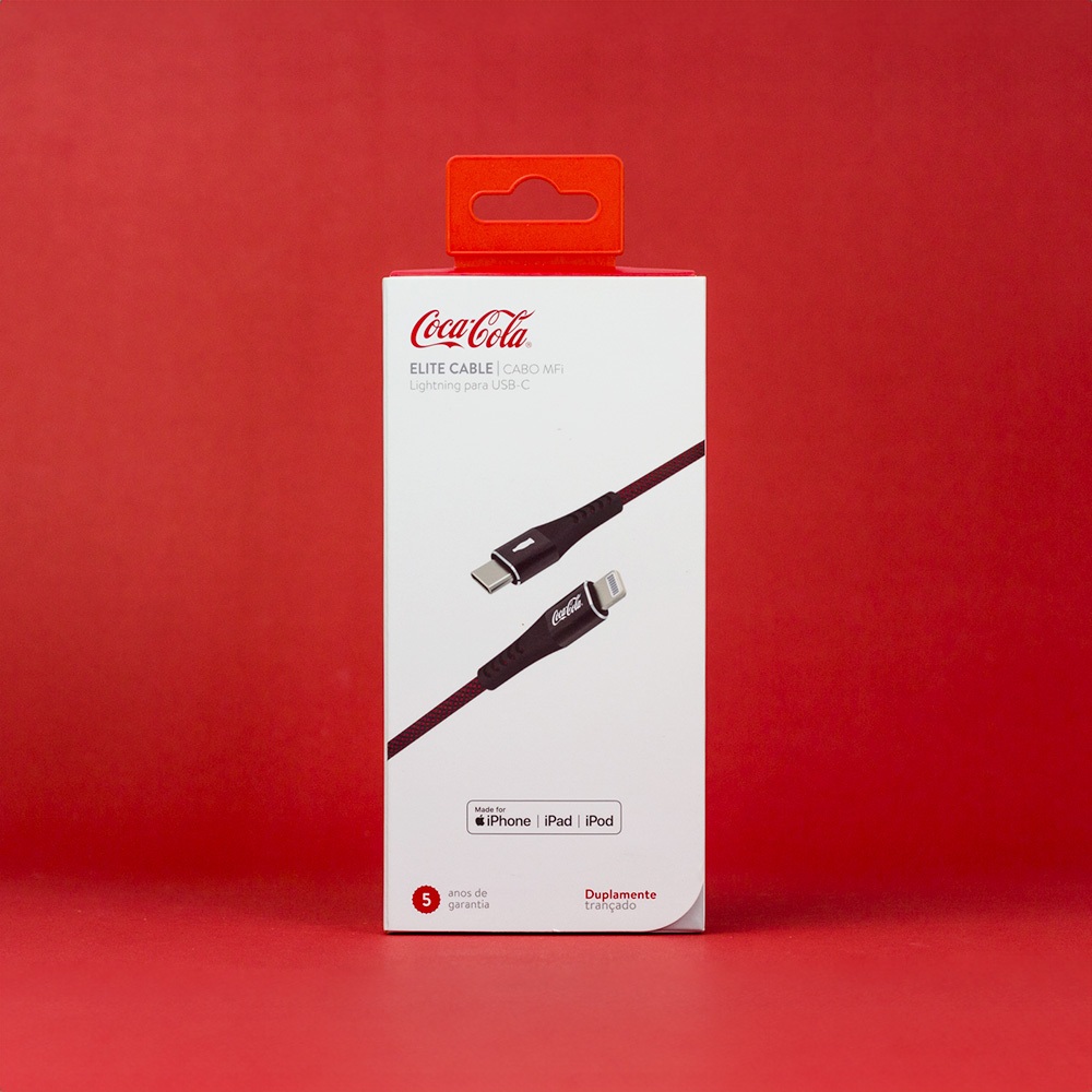 O Cabo Elite Lightning para USB-C Coca-Cola é a escolha perfeita para quem busca durabilidade, desempenho e estilo em um só produto. Projetado para atender às mais altas expectativas, este cabo é MFi certificado pela Apple®, garantindo compatibilidade total com dispositivos Apple e suportando carregamentos rápidos e seguros. Feito com um revestimento de poliéster trançado duplo e termoplástico antidesgaste, o cabo oferece resistência excepcional ao uso diário. Seu housing ultra reforçado, testado 20.000 vezes à torção, e as 4 camadas de reforço interno asseguram uma longa vida útil. Além disso, sua alta capacidade de transferência de dados de até 480Mbps e corrente de até 3A permitem carregar e sincronizar seus dispositivos com eficiência e rapidez. O comprimento de 1,2m proporciona liberdade e conveniência no uso, seja em casa, no trabalho ou em movimento. Especificações: -Revestimento: Termoplástico (TPE) com poliéster trançado duplo, material antidesgaste. -Camadas internas: 4 camadas de reforço para maior durabilidade. -Housing: Ultra reforçado, testado 20.000 vezes à torção. -Velocidade de transferência de dados: Até 480Mbps. -Corrente suportada: Até 3A. -Certificação: Chip homologado Apple® MFi para carregamentos rápidos e seguros. -Comprimento: 1,2m (3’9”). -Garantia: 5 anos. Garantia de 5 anos contra defeitos de fabricação. A garantia engloba os 3 meses de Garantia Legal. Imagens ilustrativas. As cores podem variar de acordo com o monitor ou lote de fabricação.