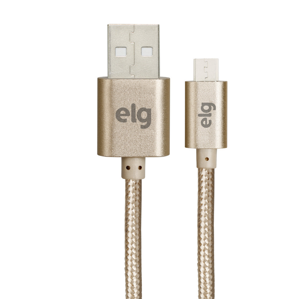 Cabo Micro USB, Sincronização e Recarga 12W 2.4A, Nylon Trançado, 1 metro, Dourado, M510BG, ELG