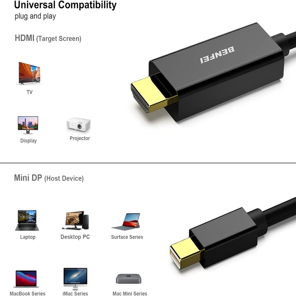 Cabo Mini DisplayPort Para HDMI 4K 1,8M Benfei MacBook