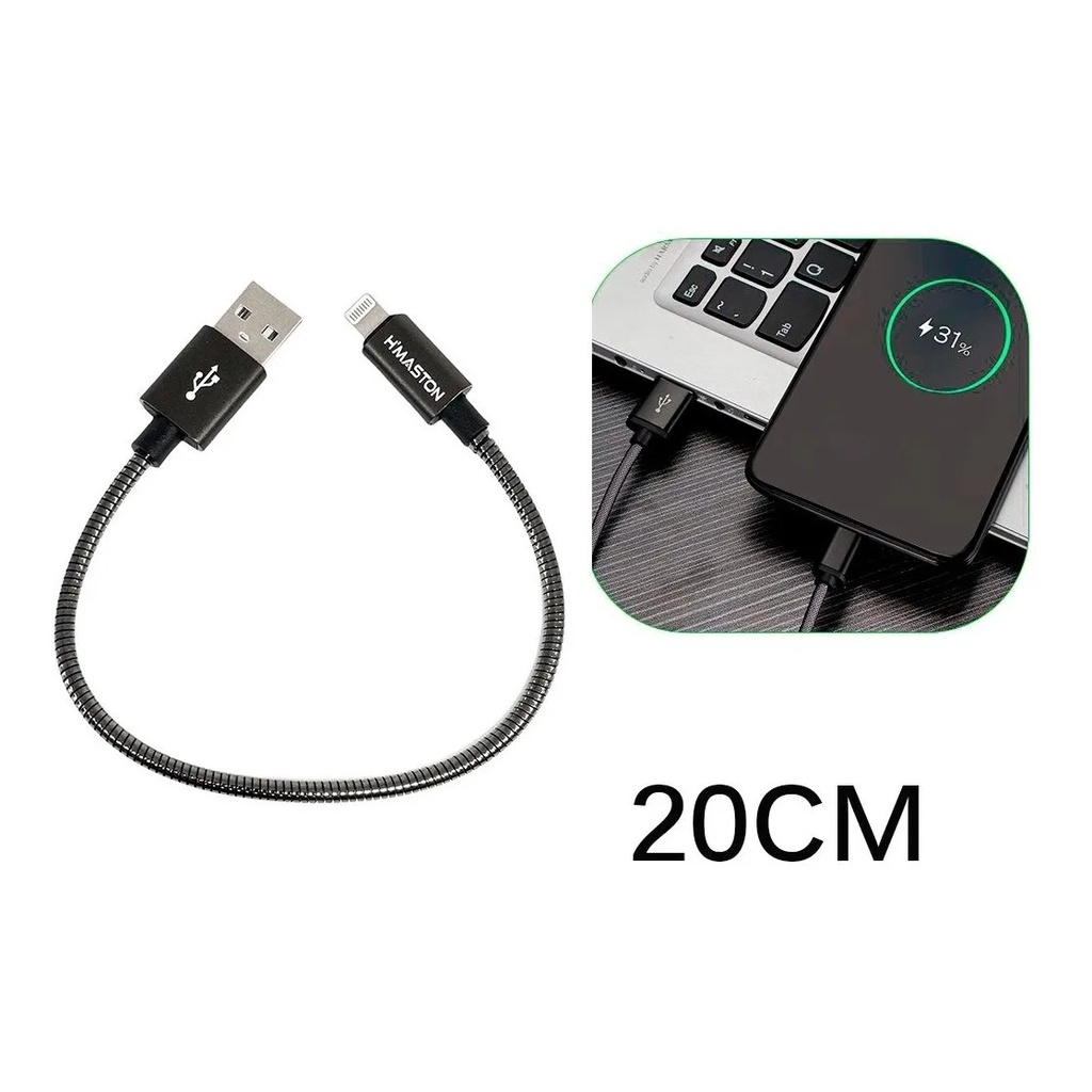 Cabo para Iphone Curto 20cm Lightning USB Metal Reforçado CarPlay Power Bank Carro Moto iPhone 6 ao 14