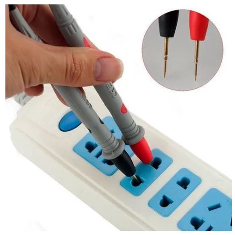 DESCRIÇÃO DO PRODUTO: Conjunto de cabos de Precisão para Multímetro – Ponta Agulha Profissional Conjunto de 2 pontas de prova emborrachadas negativo e positivo para multímetro. Ponta de Prova conta com revestimento especial, totalmente coberta por uma camada de material isolante que garante maior segurança, lembrando ainda, que sua manopla possui ranhuras que o tornam antideslizante atribuindo maior segurança ao operador. Para uso amador ou profissional, com cabo de conexão corrente máxima de 16A/30 segundos. Para multímetros, fonte de bancada, osciloscópio, para uso em elétrica e eletrônica. Produto de modelo universal, compatível com qualquer medidor. Indicado para sistemas elétricos Possibilita diversos meios de medição Permite medições em ambientes de difícil acesso Indicado para quem procura praticidade e qualidade INFORMAÇÕES TÉCNICAS: Quantidade: 01 Par Cor: Preto, Vermelho e Cinza / Vermelho e Preto Revestimento do Cabo: Silicone de alta flexibilidade; Resistência da ponta:
