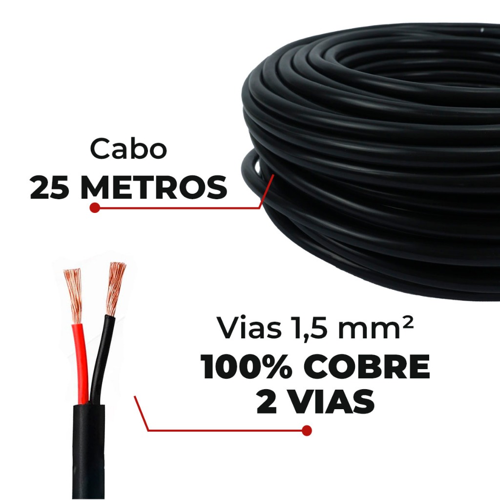 Cabo Pp 2x1,50mm 25 Metros Extensão Rolo Instalação Elétrica 100% Cobre 2 Fios Capa Reforçada