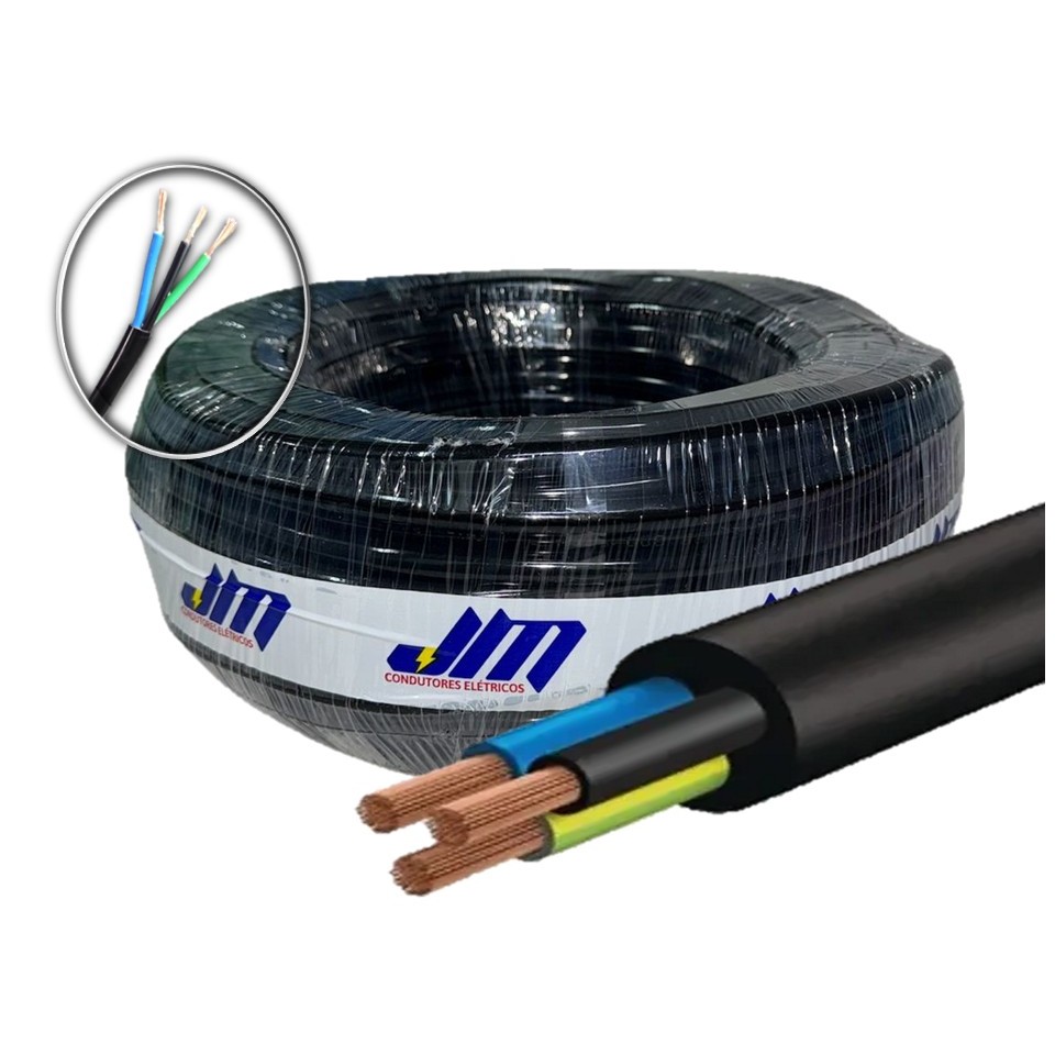 Cabo PP 3x4mm (3 Vias) - Rolo Com 50m - Ideal Para Extensões Elètricas