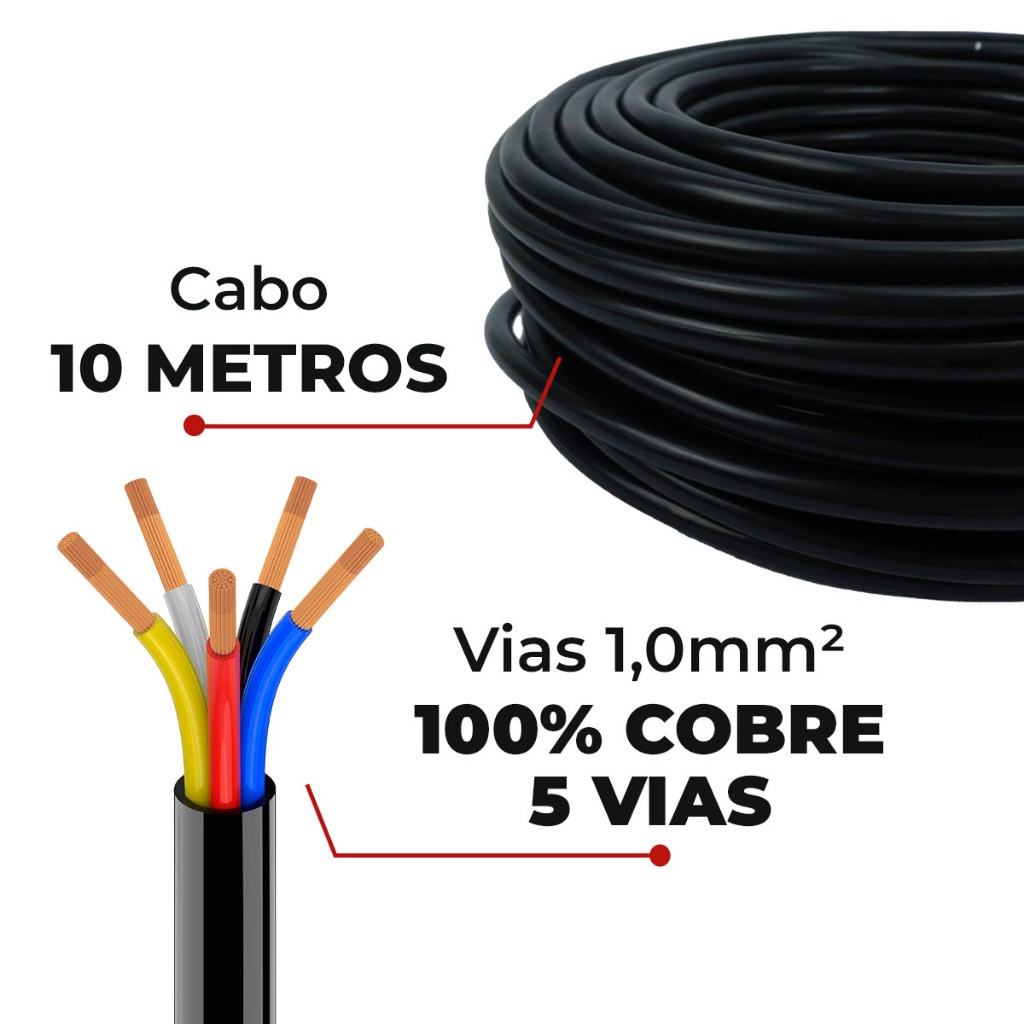 Cabo Pp 5 Vias 10 Metros Flexível 100% Cobre Para Carretinha Reboque Caminhão Trailer Seção 1mm