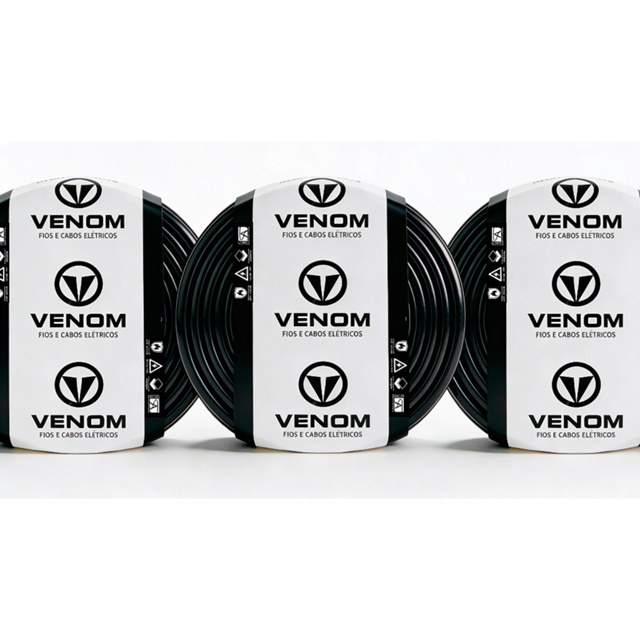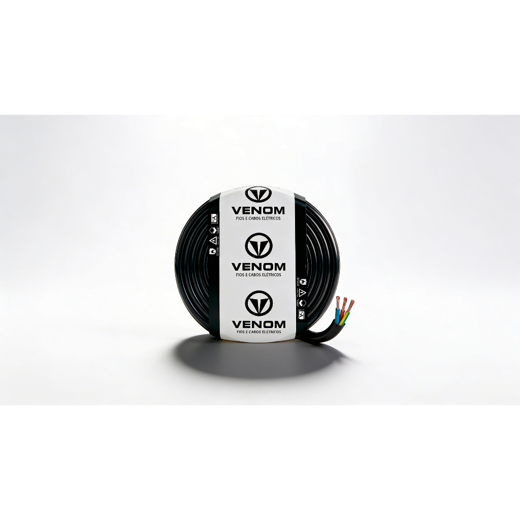 Cabo PP 3x2,5mm² VENOM – Flexível | 750V | Rolo 25m, 50m ou 100m O Cabo PP 3x2,5mm² VENOM é ideal para aplicações que exigem resistência, flexibilidade e segurança em instalações elétricas de baixa tensão. Produzido conforme a norma NBR 7286, garante excelente desempenho e durabilidade tanto em ambientes residenciais quanto comerciais e industriais leves. Sua construção com três vias internas isoladas individualmente proporciona mais organização e praticidade na instalação, enquanto a capa externa em PVC antichamas oferece proteção contra abrasão, umidade e esforços mecânicos moderados. Uma solução versátil e confiável para quem busca qualidade e segurança em ligações elétricas. **ESPECIFICAÇÕES TÉCNICAS** Marca: VENOM Modelo: Cabo PP 3x2,5mm² Tipo de cabo: PP Número de vias: 3 Seção: 3 x 2,5mm² Tensão nominal: 300/500V Material da cobertura: PVC Antichamas Cor da cobertura: Preto Normas aplicáveis: NBR 7286 Tipo de embalagem: Rolo Comprimentos disponíveis: 25m, 50m ou 100m **BENEFÍCIOS DO PRODUTO** - Alta flexibilidade, facilitando a instalação - Isolação antichamas para maior segurança - Capa externa resistente contra desgaste e umidade - Ideal para equipamentos portáteis e máquinas elétricas - Produto em conformidade com normas técnicas **INDICAÇÕES DE USO** Indicado para: - Ligações de máquinas e motores elétricos - Ferramentas elétricas - Extensões elétricas - Equipamentos portáteis - Instalações residenciais e comerciais de baixa tensão **INSTRUÇÕES DE USO** 1. Desenrole o cabo cuidadosamente para evitar torções. 2. Utilize ferramentas apropriadas para corte e decapagem. 3. Conecte aos terminais ou conectores adequados. 4. Certifique-se de que as conexões estejam firmes e bem fixadas. **ITENS INCLUSOS** 1 Rolo de Cabo Flexível 10mm² - Escolher a quantidade desejada, temos rolo com 100 metros, 50 metros e 25 metros. **ORIGEM** Produto fabricado no Brasil. **GARANTIA** Garantia de 3 meses (90 dias) oferecida pelo Venom, cobrindo defeitos de fabricação.