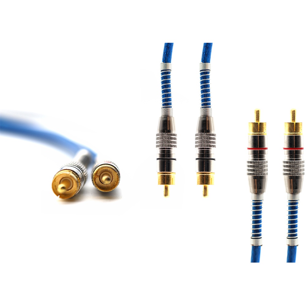 Cabo RCA 1 Metro Dupla Blindagem 5mm Plug Metal Azul