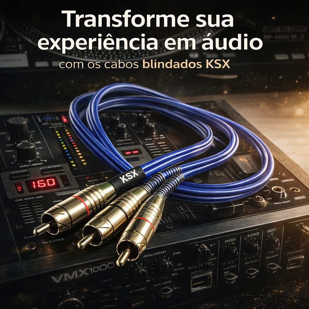 CABO 2 X 4 RCA MACHO/MACHO - Ideal para ligação de modulo de 4 canais, já acompanha o Y embutido. INFORMÇÕES TÉCNICAS DOS PRODUTOS KSX – konexsound Fabricado em cobre OFHC (alta condutividade térmica – livre de oxigênio), com pureza superior a 99% para sistemas de áudio que necessitam de alta frequência de sinal e garante baixa resistência ôhmica. Cabos KSX possui construção que podem reduzir ou sanar ruídos na maioria dos casos, “certifique-se que seu som possua um bom aterramento”. ISOLAMENTO CENTRAL Principal elemento do cabo RCA: A onda eletromagnética caminha no interior do dielétrico ao ser transmitido um sinal pelo condutor interno. Para sinais de alta frequencia é constituido de polietileno irradiado, o que proporciona resistencia a altas temperaturas e reprodução de frequências altas. BLINDAGEM INTERNA Blindagem principal responsável pela proteção contra interferências eletromagnéticas e eletrostáticas externas. Malha Cobre ESPIRALADA para resistência a tração e que elimina os ruídos. (100% OFHC. Alta condutividade térmica – livre de oxigênio) CAPA EXTERNA PVC cristal (Cloreto de polivinila) na cor azul Royal. Responsável pela proteção do cabo ao meio externo, com uma grande RESISTÊNCIA À TRAÇÃO E EXCELENTE flexibilidade junto com o design KSX – konexsound CONECTORES Fabricados de latão CLA niquelado tornando-se ainda mais preciso os sinais de áudio, conta com um sistema de pressão (possui cavidades AJUSTAVEIS DE PRESSÃO) os ajustes de pressão evitam o mal contato, e traz uma conexão perfeita. As molas tem a função de aumentar a flexibilidade e não danificar o cabo. Conteúdo da Embalagem: - 1 Cabo rca 4 x 2 macho -com diversas variacoes de tamanho Plugs de alta pressão Atenção: De acordo com a Lei Federal nº 11.291, a exposição prolongada a ruídos superiores a 85 dB pode causar danos ao sistema auditivo. Importante: Garantia de 1 ano. A KSX recomenda que a instalação seja feita por profissional especializado e não se responsabiliza pelo mau uso do produto. - Somente dê o lance se realmente tiver a intenção de comprar. - Utilize o espaço reservado para perguntas e esclareça suas dúvidas. - Clique em comprar apenas uma vez e aguarde alguns minutos até receber um e-mail de confirmação do pedido. - Confira sua mercadoria ao receber para evitar transtornos. Garantia de fábrica: 1 anos