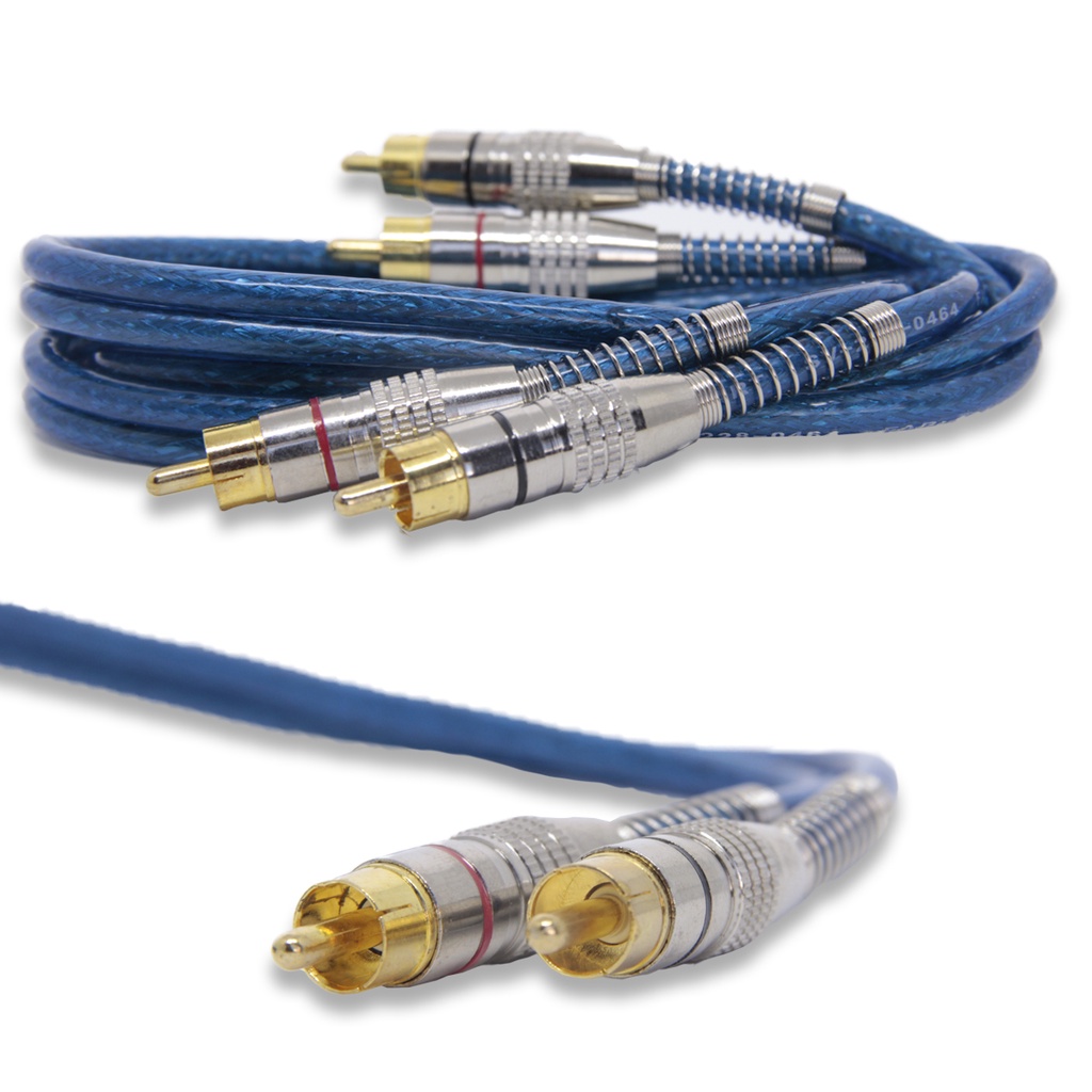 Cabo Rca 5 Metros Blindado Prime Plug Banhado Metal Blue Som