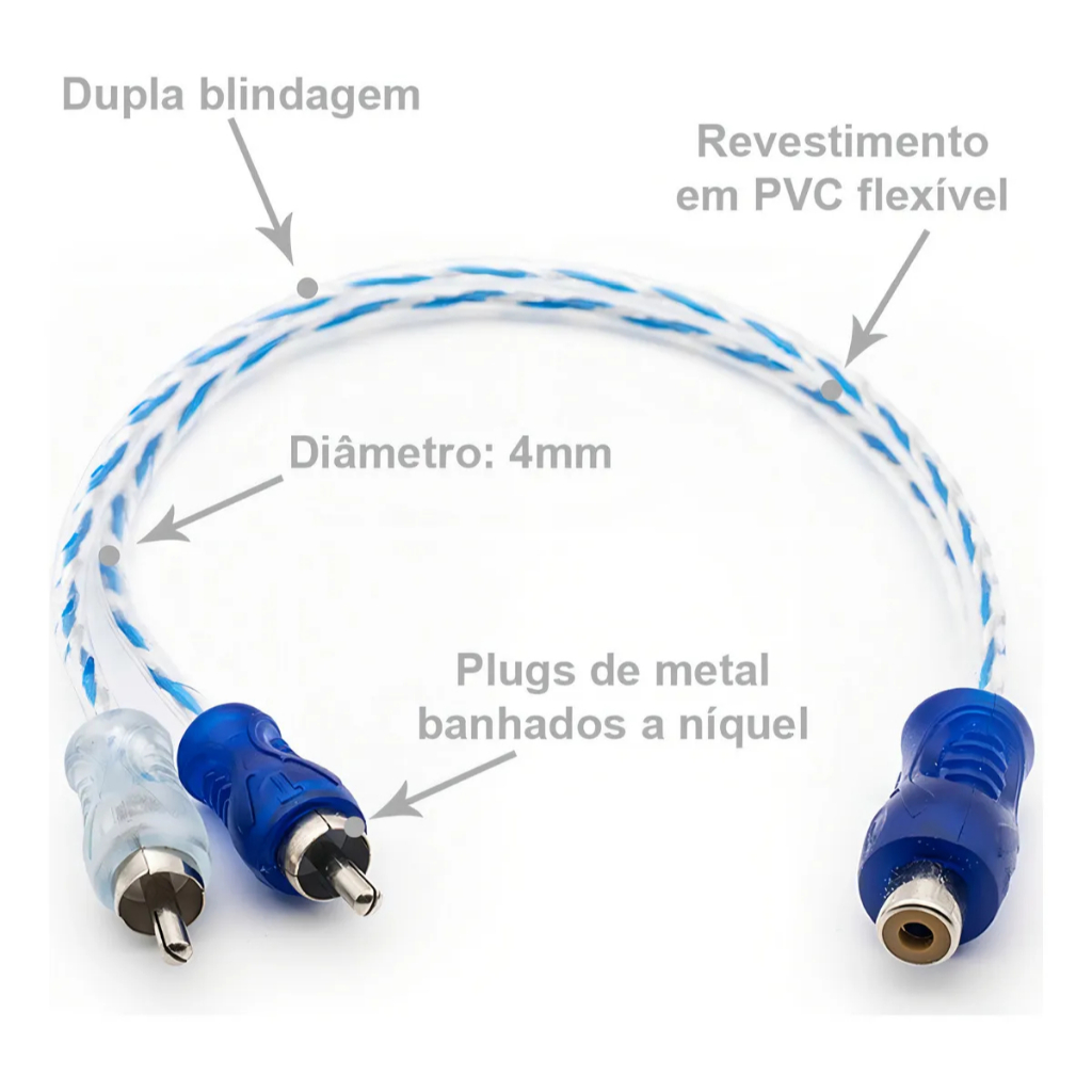| Cabo RCA 5M + 2Y TechOne Svart Azul Dupla Blindagem Som Automotivo ... este produto | R$ 24,00 | 20% | 5.0/5 | — |