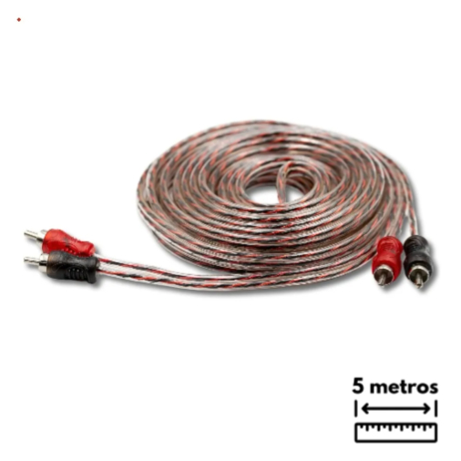 Cabo RCA Injetado 5 Metros 4 mm Com um material interno feito de OFHC livre de oxigênio, esse cabo garante máxima condução e um som de alta qualidade. Ele ainda tem dupla blindagem e malha interna trançada, eliminando qualquer tipo de interferência ou perda de sinal. Para aumentar a durabilidade, o revestimento é feito em PVC super resistente com um design listrado e arrojado. Os plugs são duplos, de alta pressão e metálicos, garantindo a melhor experiência sonora para você! O cabo RCA possui 4mm de espessura e um revestimento primário preto e transparente. Além disso, conta com uma camada externa em PVC transparente para proteger melhor o filamento interno. Os conectores de alta pressão garantem uma conexão firme e um sinal limpo de ponta a ponta. CAPA OU COBERTURA EXTERNA Cobertura externa translucida, fornece a proteção do cabo contra o meio externo PVC (Cloreto de polivinila) – possui como vantagem a flexibilidade Características: - Conectores de Alta Pressão - Alta Capacidade de Condução com Fio de Cobre 99,99% OFC - Isolamento Dielétrico com Excelente Blindagem - 5 metros de Comprimento por 4 mm de Espessura - Revestimento em PVC Transparente - Cabo RCA Paralelo Importante: Recomendamos que a instalação seja feita por um profissional especializado. Não nos responsabilizamos por defeitos causados por mau uso ou instalação indevida. Garantia do vendedor: 30 dias