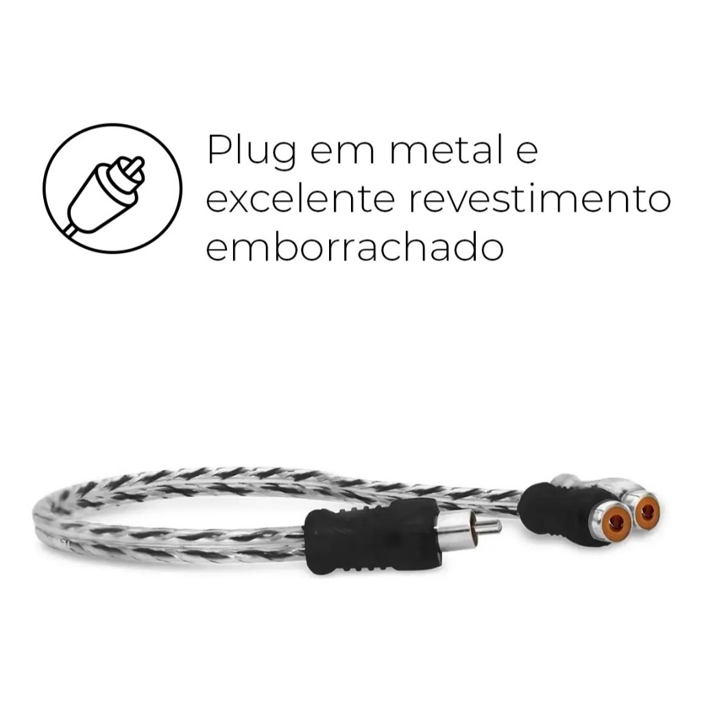 Cabo RCA Y com 1 Macho E 2 Fêmeas Blindado Preto Prata 4 milímetros pra Módulo Potência Amplificador