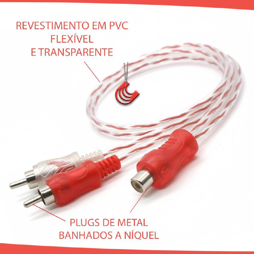 Cabo RCA Y com 2 Machos E 1 Fêmea Blindado Vermelho Prata 4 milímetros Módulo Potência Amplificador