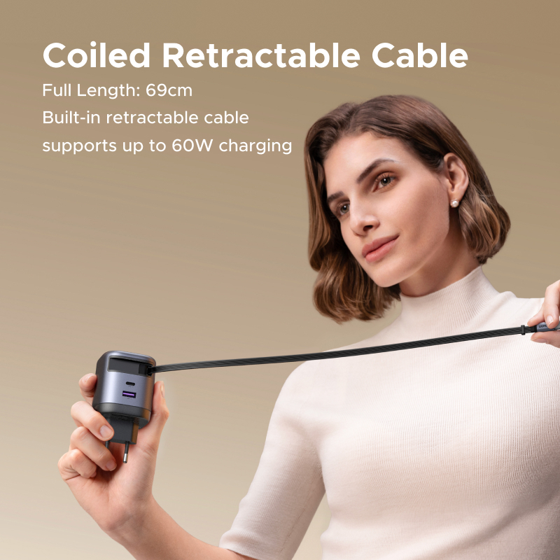 Cabo Retrátil Para iPhone UGREEN 65W 3 Portas GaN De 69 Cm USB A C Carregador Rápido 16 Pro Max , 15,14