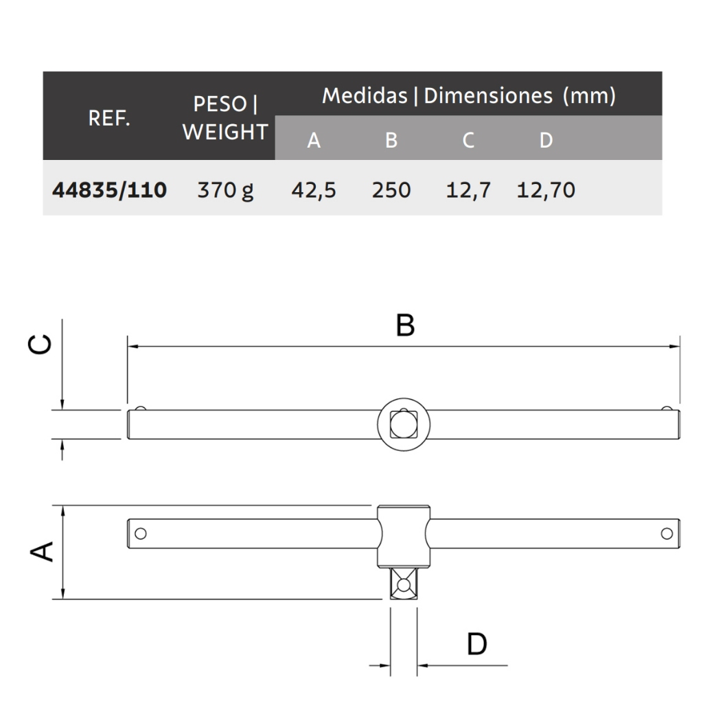 Cabo T 1/2" com 25cm Tramontina PRO para Soquete 44835/110 Descrição do Produto: - Na hora de apertar ou afrouxar parafusos e porcas que necessitam de mais torque, a escolha certa é o cabo T da Tramontina PRO; - Resistência e durabilidade na medida certa. Características: - Forjado em aço cromo vanádio e temperado; - Acabamento cromado; - DIN 3122; - Indicado para aplicação de maiores esforços. Dados Técnicos: - Marca: Tramontina PRO; - Referência: 44835/110; - Peso: 0,37 kg; - Encaixe: 1/2"; - Comprimento: 10" (25cm); - Dimensões do produto: 250x13x43 mm. Componentes Inclusos na Embalagem: - 01 Cabo T 1/2" com 25cm Tramontina PRO para Soquete 44835/110.