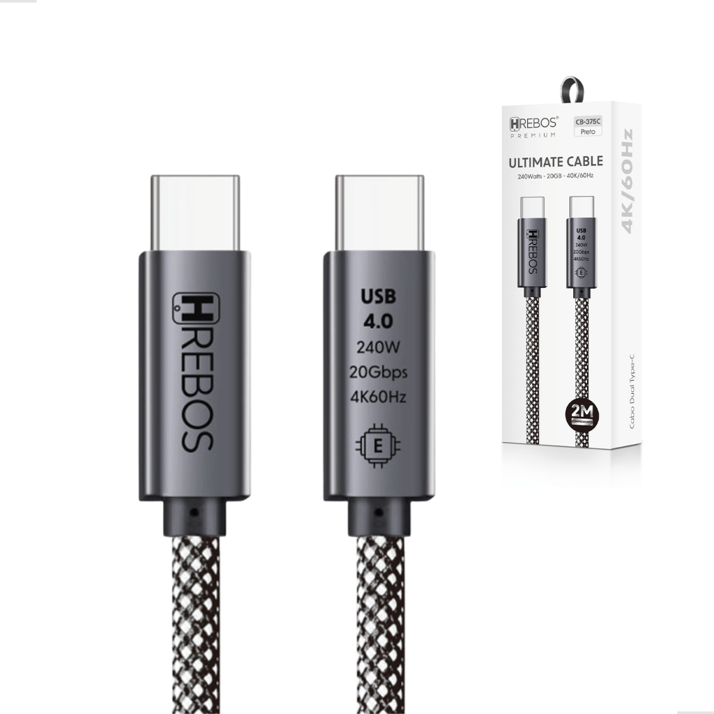 🚀 Conecte e carregue com alta performance e durabilidade Ideal para celulares, notebooks, tablets, games e streaming 🎮 ✅ Principais benefícios • Carregamento ultrarrápido 240 W conector dual USB‑C • Transferência de arquivos com velocidade de 20 Gbps • Suporte a vídeo 4K/60 Hz para exibir tela em monitores • Comprimento de 2 metros oferece mais mobilidade • Cabo em nylon trançado reforçado resiste a dobras e uso intenso 📊 Especificações técnicas Conectores: USB‑C ↔ USB‑C Comprimento: 2 m Potência: 240 W Dados: até 20 Gbps Vídeo: até 4K60Hz Material: nylon trançado reforçado ❓ Dúvidas frequentes P: Funciona com notebook e celular? R: Sim, carrega e transmite dados/vídeo em ambos (até 4K/60 Hz). P: O cabo é resistente? R: Sim, nylon trançado proporciona alta durabilidade e flexibilidade. P: É compativel com todas as marcas? Sim compativel com qualquer dispositivo que a entrada seja tipo-c (Apple (MacBook, iPad), Samsung, Xiaomi, Motorola, Asus e demais)