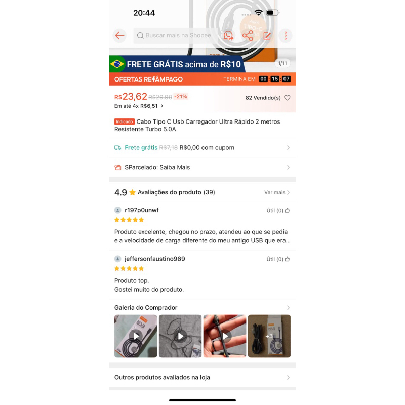Explore a durabilidade e conveniência com nosso cabo Tipo C resistente de 2 metros! Este não é apenas um cabo, é uma garantia de conectividade estável e duradoura. 🔗 Conectividade Excelente: Desfrute de uma conexão rápida e estável para carregar seu Smartphone. Compatível com uma variedade de modelos, este cabo é projetado para proporcionar eficiência e confiabilidade. 🛡️ Construção Robusta: Nosso cabo resistente é construído para durar. Com revestimento reforçado e conectores robustos, ele suporta o desgaste diário e dobras sem comprometer a eficácia. 📏 Dois Metros de Liberdade: Liberte-se das limitações dos cabos curtos. Com dois metros de comprimento, este cabo oferece flexibilidade para carregar e usar o seu dispositivo com conforto, onde quer que você esteja, sem precisar usar extensão. 💡 Compatibilidade Universal: Projetado para atender às suas necessidades, este cabo é compatível com diversos dispositivos, proporcionando versatilidade e praticidade. 🌟 Design Elegante: Além de sua funcionalidade excepcional, o design elegante deste cabo adiciona um toque de estilo ao seu conjunto de acessórios. Escolha a qualidade, escolha a durabilidade. Torne a experiência de carregamento do seu Smartphone mais eficiente e sem preocupações com nosso cabo resistente de 2 metros. Faça sua compra agora e experimente a diferença! Ficha Técnica - Comprimento: 2 metros - Revestimento: Nylon de Alta resistência - Experiência de carregamento segura e confiável - Perfeitamente compatível com Android - Carregamento e transmissão de dados rápidos e eficientes CORES: AS CORES SÃO ENVIADAS DE ACORDO COM A DISPONIBILIDADE EM ESTOQUE. SÓ SERÁ ENVIADA A COR DE PREFERÊNCIA SE COLOCAR NAS OBSERVAÇÕES DO PEDIDO !!! CASO NÃO INFORME A COR SERÁ ENVIADA DE ACORDO COM A DISPONIBILIDADE ME ESTOQUE, PODENDO VARIAR ENTRE: PRETO, AZUL, VERMELHO E CINZA.