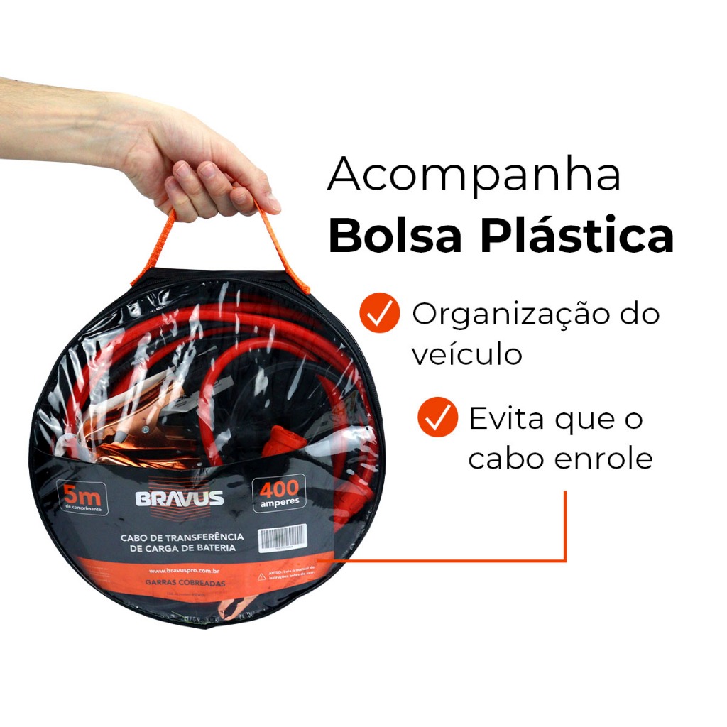 A Bravus é referência no mercado quando o assunto são peças e acessórios automotivos. Prezando pela qualidade e acabamentos, consequência da tecnologia de ponta investida para melhor atender e aproximar nossos clientes. Projetado para atender as demandas de amperagem de todos os veículos, este cabo garante uma transmissão de energia eficiente e segura, essencial para emergências na estrada. Com seu design robusto e materiais de alta qualidade, é a solução ideal para recarregar baterias de caminhões, carros, motos e mantê-los em operação. Ficha Técnica: • Corrente Máxima: 400a; • Comprimento: 5m; • Isolamento: PVC resistente a altas temperaturas e abrasão; • Conectores: Garras tipo jacaré de aço revestidas com cobre; • Bitola: 10mm²; • Revestimento cobreado; ** ACOMPANHA BOLSA PARA ARMAZENAMENTO ** Benefícios: ✅Alta Capacidade: Suporta até 400 Amperes, ideal para TODOS os veículos. ✅Durabilidade: Robusto para uso frequente e em condições adversas. ✅Segurança Garantida: Isolamento duplo que previne curtos-circuitos e superaquecimento. ✅Fácil Armazenamento: Acompanha bolsa prática para armazenamento e transporte. ✅Versatilidade: Pode ser utilizado TODOS os veículos como carros, caminhões, ônibus e motos. ○○○○○○○○○○○○○○○○○○○○○○○○○○○○○○○○○○○○○○○○○○○○○○○○ A Ninja Parts, fundada em 2016 em Curitiba-PR, é um e-commerce referência nacional em peças e acessórios automotivos. Oferecemos as melhores marcas com qualidade e envio rápido, priorizando a satisfação do cliente e um excelente atendimento. Garantia • 90 dias a partir da data da compra; • Garantia válida apenas para defeitos de fábrica. Não é coberto mau uso, má instalação, quebra ou adaptações que alterem características originais do produto; Trocas e Devoluções • Importante que todos os itens sejam enviados nas embalagens originais de forma segura; • Caso o produto retorne danificado, os custos ficarão sob responsabilidade do cliente; Recomendação • A instalação seve ser realizada por um profissional de sua confiança; Compra Garantida • Transação Segura; • Estorno automático em caso de imprevistos; • Acompanha nota fiscal; • Produtos a pronta entrega.