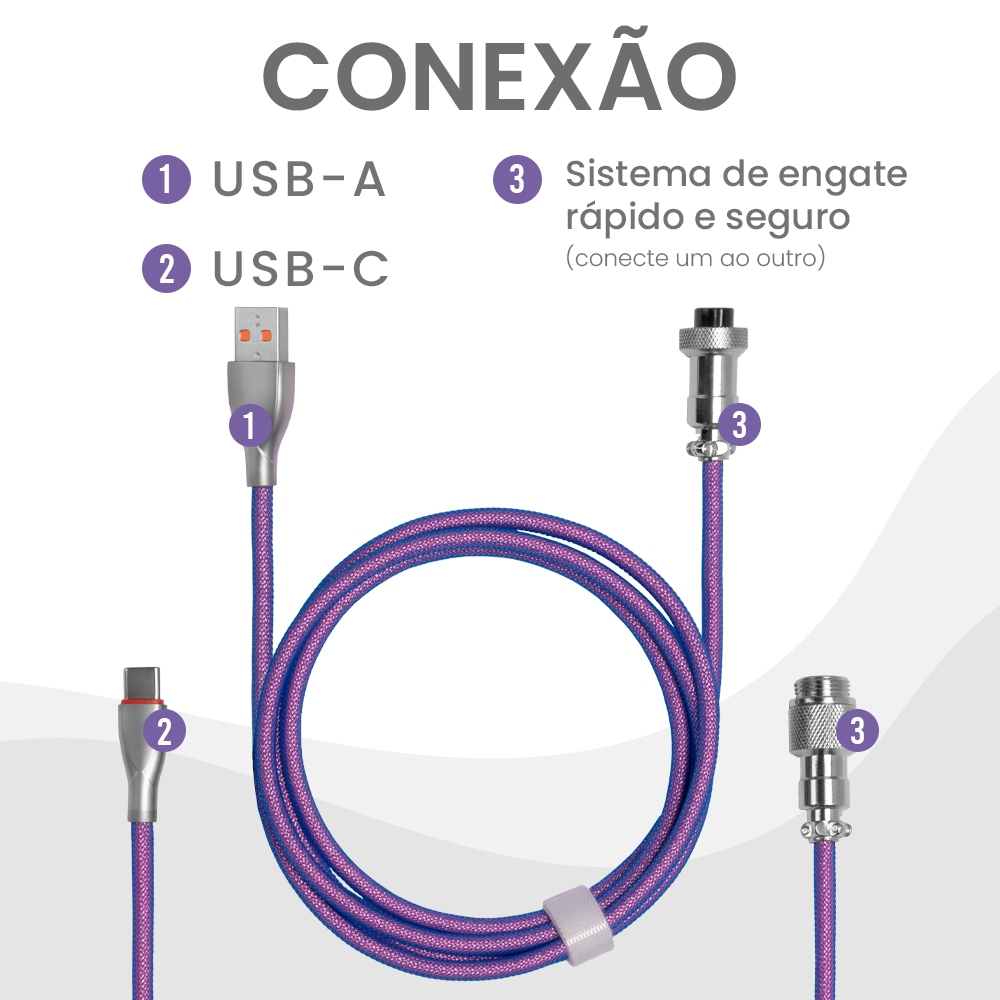Cabo USB-A Para Tipo C Pichau Meduza P, Trancado, Nylon, GX12, Roxo, PCH-MP-01