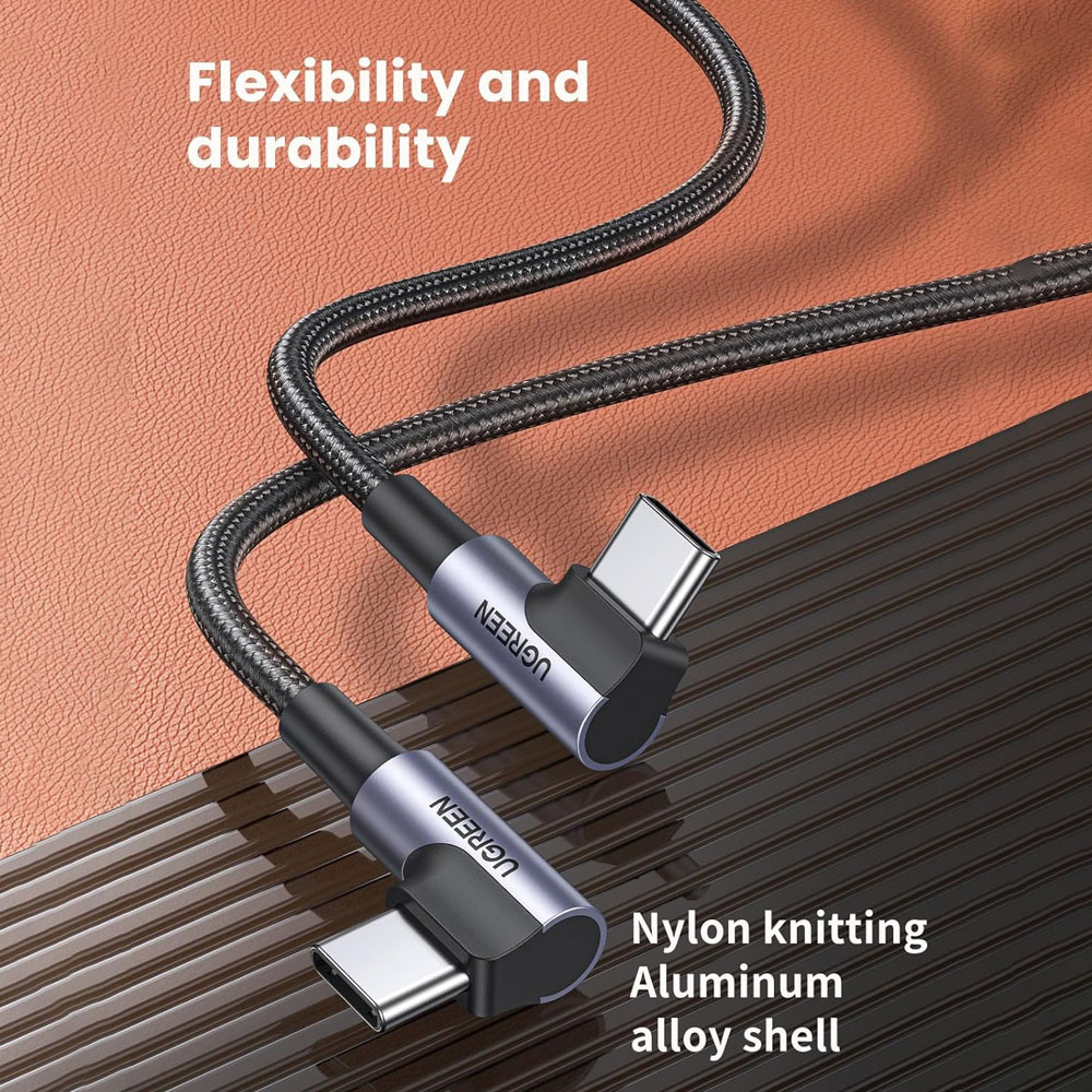 Cabo Usb C Angular Ugreen Macho/Macho 3A 1 Metro Preto