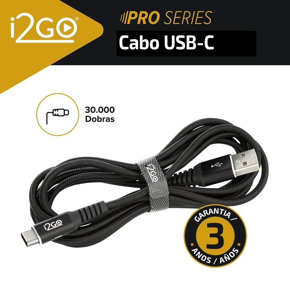 Cabo USB-C i2GO 2m 3a Nylon Trançado Preto