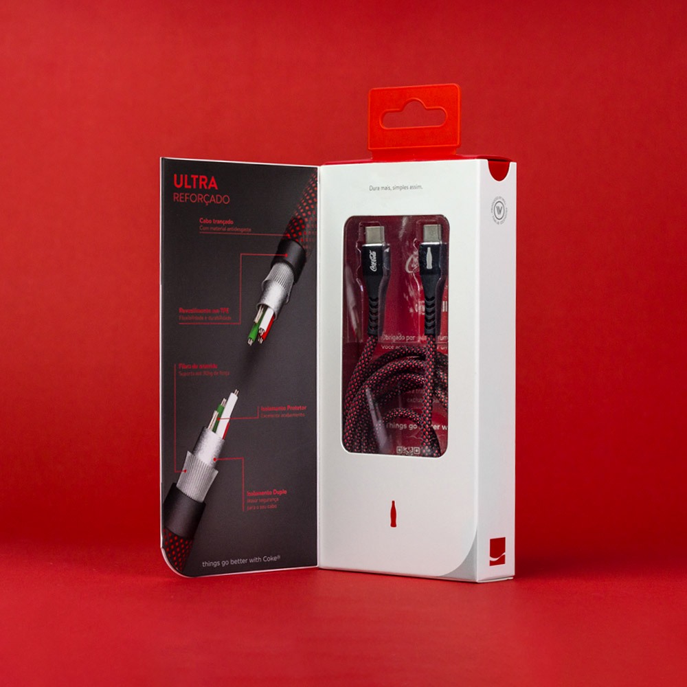 Cabo USB-C para USB-C Preto | Elite Cable Coca-Cola