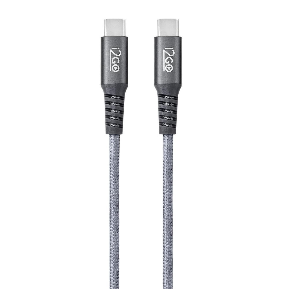 Cabo USB-C + USB-C i2GO 2m 3a Nylon Trançado Chumbo