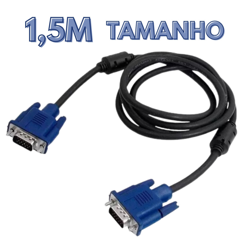 Há 10 anos realizando sonhos! <3 Loja Brotherss com 10 anos de experiência no mercado de informática! (3 MESES DE GARANTIA) ️ Observações sobre o Produto Produto usado, revisado e higienizado! Todos os itens passam por um rigoroso processo de inspeção técnica antes do envio, garantindo pleno funcionamento e excelente qualidade visual. Procedência: lotes corporativos — equipamentos que eram utilizados em empresas, conhecidos por sua alta durabilidade e confiabilidade. O produto não acompanha caixa original, sendo enviado em embalagem própria da loja, cuidadosamente protegida com materiais de segurança para evitar danos durante o transporte. Nosso objetivo é garantir que o produto chegue em perfeito estado e pronto para uso. Cabo VGA 1.5 Metros – Alta Qualidade O Cabo VGA é ideal para conectar monitores, projetores ou televisores a computadores, notebooks, ou outros dispositivos com saída de vídeo VGA (15 pinos). Oferece transmissão estável de imagem e excelente desempenho para uso profissional ou doméstico. Especificações Técnicas Tipo de Conector: VGA (15 pinos / HDB15 macho-macho) Comprimento: 1,5 metros Função: Transmissão de imagem analógica (vídeo) Compatibilidade: Monitores, PCs, notebooks, projetores, televisores e placas de vídeo com entrada/saída VGA Revestimento: PVC resistente, oferecendo maior durabilidade e flexibilidade Conectores: Blindados e com parafusos laterais para fixação segura Destaques Transmissão de imagem estável e sem interferências. Ideal para uso em ambientes corporativos, residenciais ou educacionais. Cabo de 1,5m, oferecendo praticidade para conexões entre dispositivos próximos. Produto testado e garantido, pronto para uso imediato. Envio Seguro Todos os produtos são embalados com proteção reforçada, garantindo que cheguem ao cliente em perfeitas condições. ============================================================ Produto vem com NF? R: Sim! embalado junto com a nota! - Produto disponível a pronta entrega? R. Sim, produto disponível a pronta entrega, pedidos confirmados até as 16h costumam ser encaminhados no mesmo dia para envio. ENVIO!!! **Caso você compre até as 14h, levaremos ainda no mesmo dia o produto para despache, garantindo que o produto chegue o mais rápido possível até sua casa!