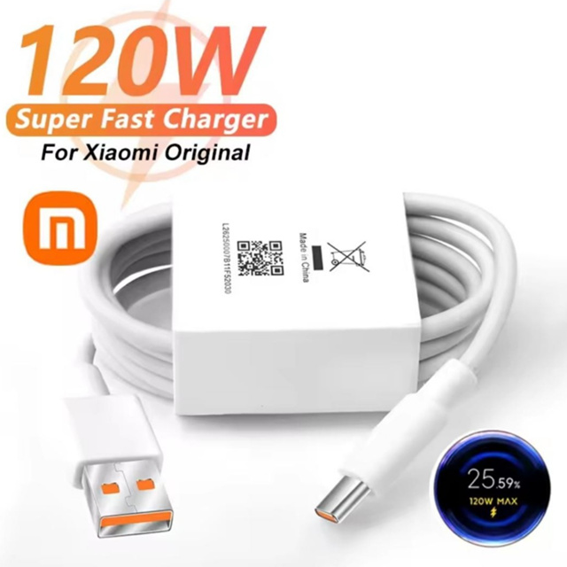 Cabo Xiaomi Original Tipo C Turbo 120W 67W 33W 6A Carregamento Rapido 1Metro