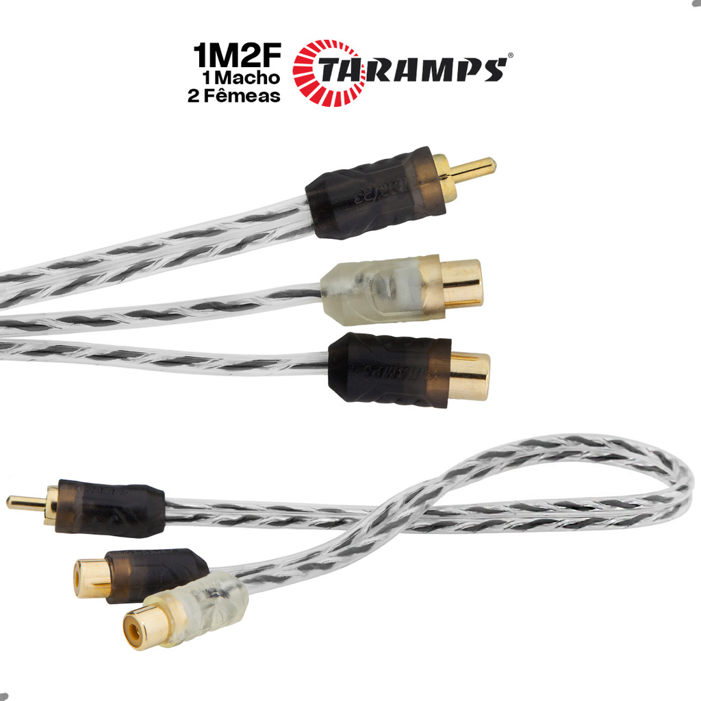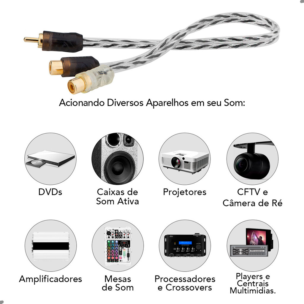Cabo Y 1M2F 1 Macho 2 Fêmeas RCA Som Automotivo Injetado Flexível Transparente Taramps