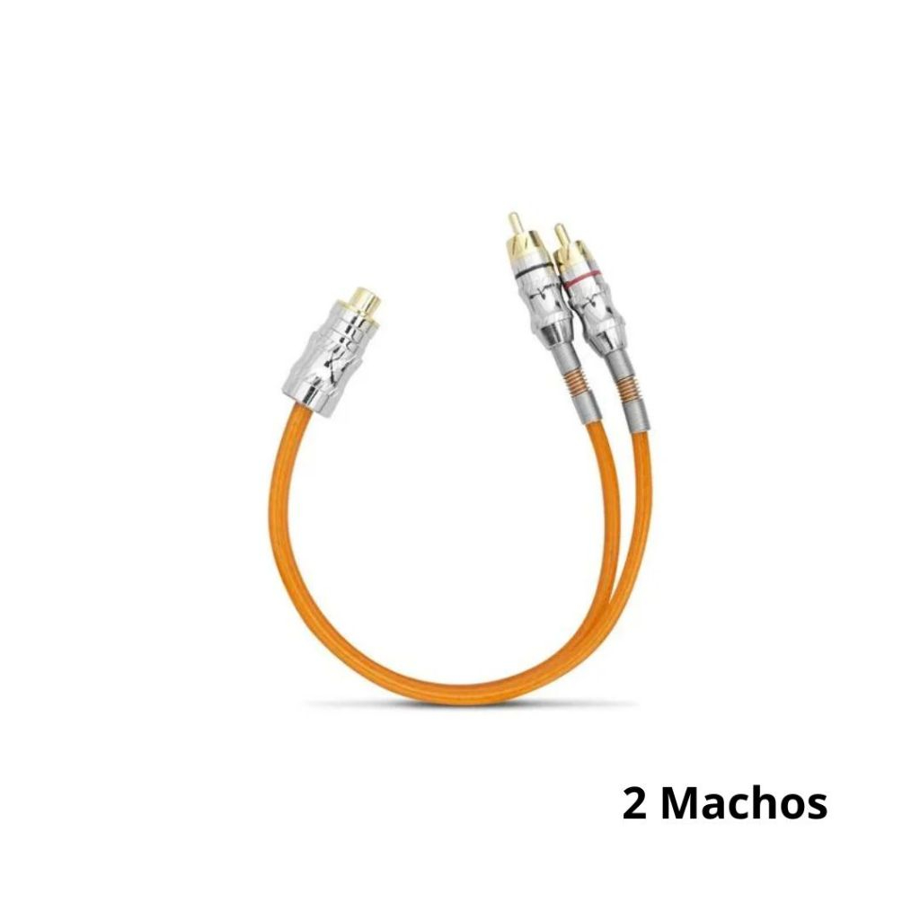 Cabo Y 2 Macho + 1 Femea RCA KX3 Profissional Blindado 30cm Banhado a Ouro 2RCA + 1FRCA Laranja
