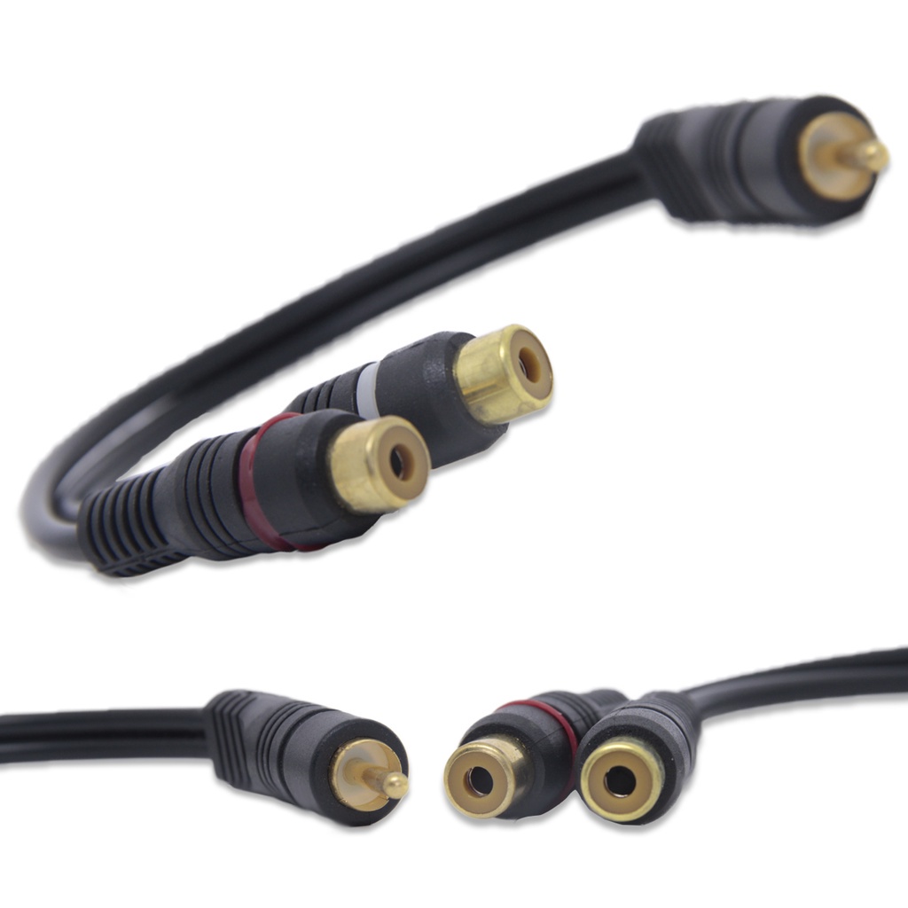 Cabo Y RCA KX3 1 Macho 2 Fêmeas 3,6mm 30cm Preto Som Automotivo Modulo Carro