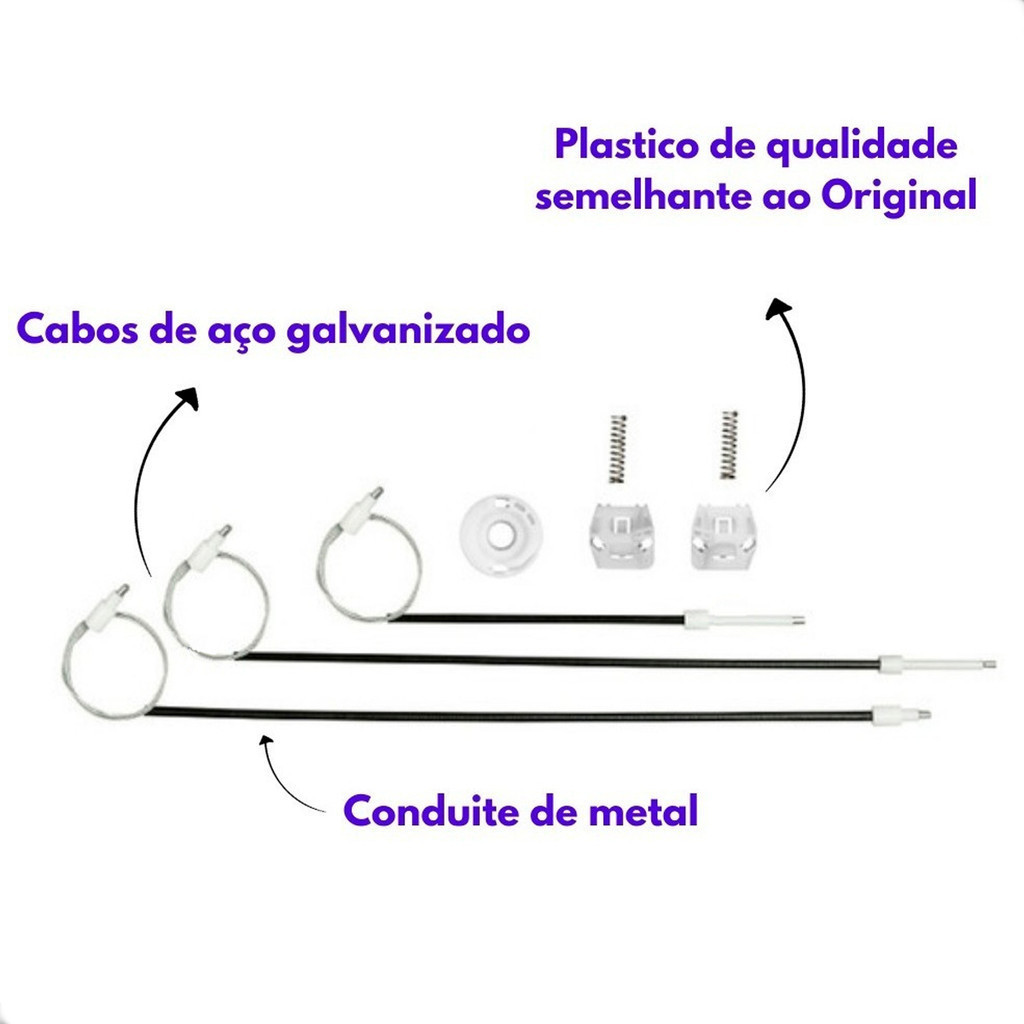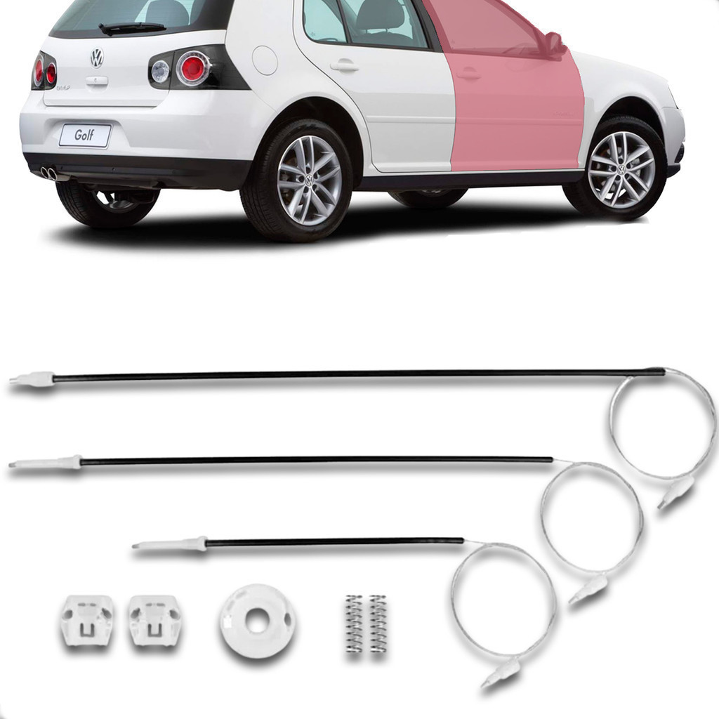 Kit Cabo Reparo da Máquina de Vidro Eletrico Dianteiro do Golf 1998 99 00 01 02 03 04 05 06 07 08 09 10 11 12 á 2013 Anúncio refere-se a: -2 Arraste -1 Roldana -2 Molas -3 Cabos com capas e ponteiras Aplicação: -Golf 1998 á 2013 -Somente para portas dianteira esquerda ou direita Obs: Este kit é compativel somente com a máquina de vidro modelo original. **Recomendamos que a instalação do produto seja feita por profissionais especializados,