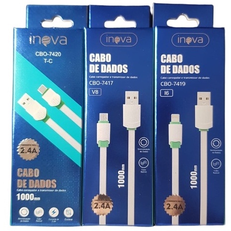 Cabos De Dados e Carregamento Inova 3.4 A V8 / Tipo - C / Iphone ( pitico )