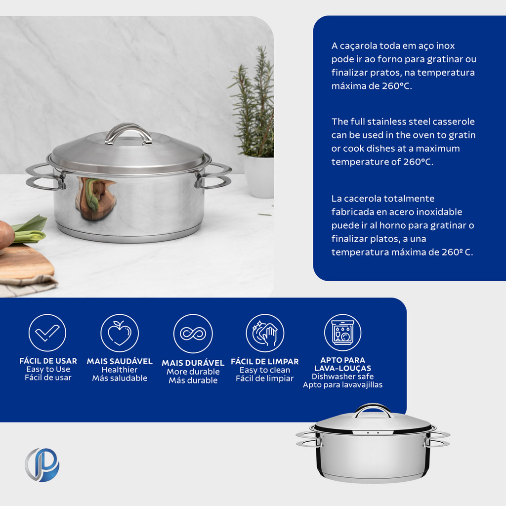 Caçarola Aço Inox Tramontina Solar funda 20 cm 3,60L Chegou a sua hora de fazer bonito na frente da família toda. Com a Caçarola Funda em Aço Inox com Fundo Triplo com Tampa e Alças 20 cm de diâmetro 3,6 L Solar você pode preparar grandes receitas e encantar a todos. O seu fundo triplo (aço inox + alumínio + aço inox) promove um cozimento rápido e uniforme, além de manter o alimento quente por mais tempo, como a sua parte interna é desenvolvida de aço inox de alta qualidade, ela não solta nenhum tipo de resíduos nos alimentos, mantendo-os saudáveis e com o seu sabor natural. Quem dá o tempero é você. Além disso, para facilitar ainda mais o seu uso ela pode ser lavada diretamente na máquina de lavar louças. E lembre-se: cozinhar para quem a gente gosta é um ato de amor. Produto com certificação compulsória certificada pela OCP 0003, registro 001470/2018, modelo (linha) Solar, conforme portaria INMETRO 419/2012 25 anos de garantia (90 dias de garantia legal acrescidos de 24 anos e 09 meses de garantia contratual) para vícios ou defeitora de fabricação. Diâmetro: 20,0 cm Capacidade: 3,60 l. Espessura: 0,7 mm.