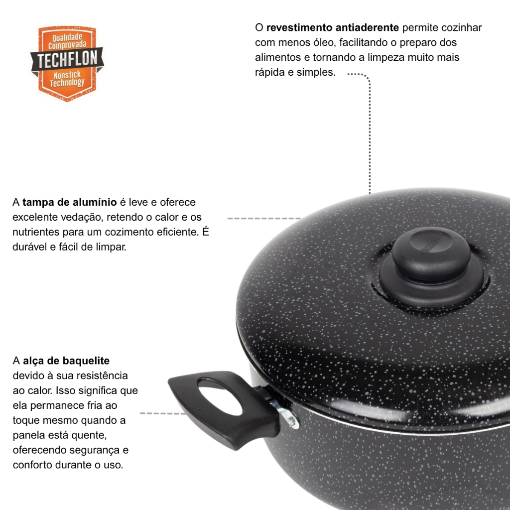 Caçarola Antiaderente Com Tampa 26Cm 5L Preto Nacional