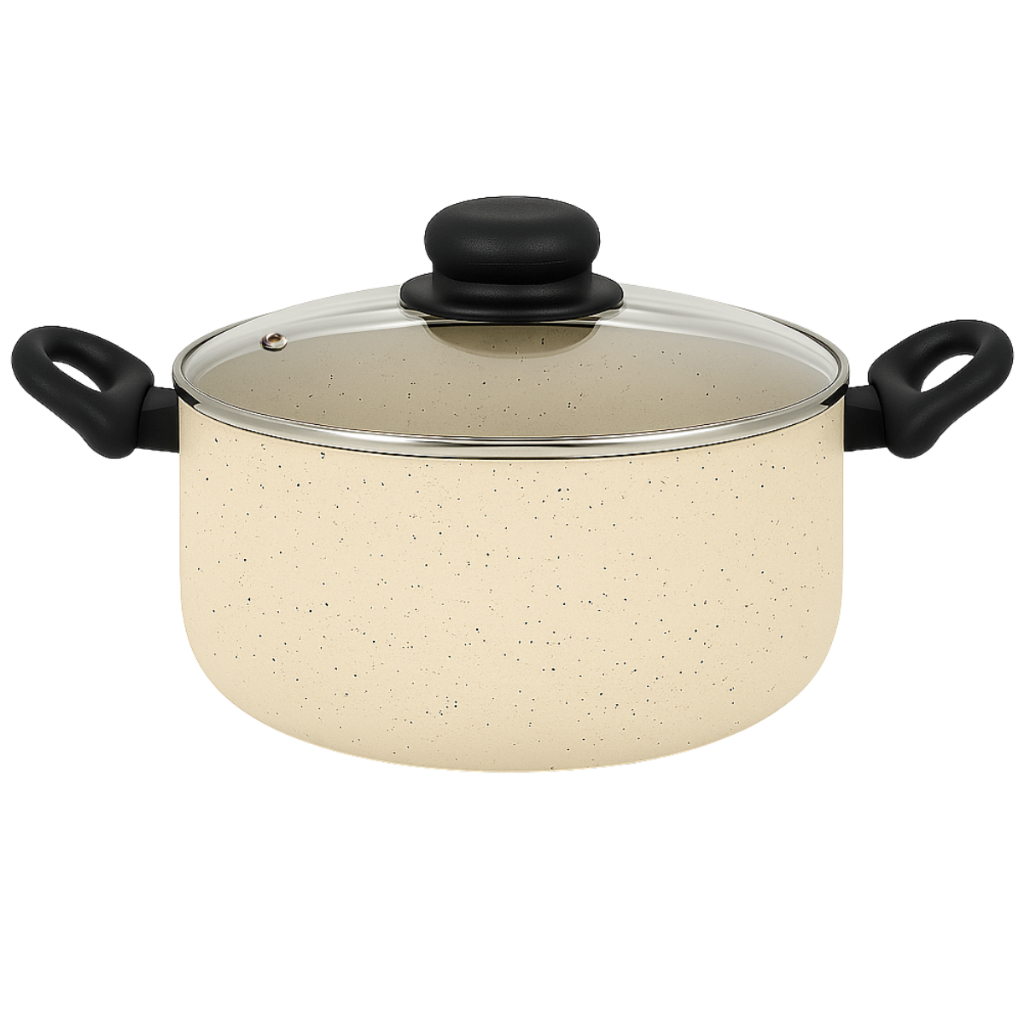 Caçarola Antiaderente com Tampa, branco marmorizado, 5 camadas, várias medidas