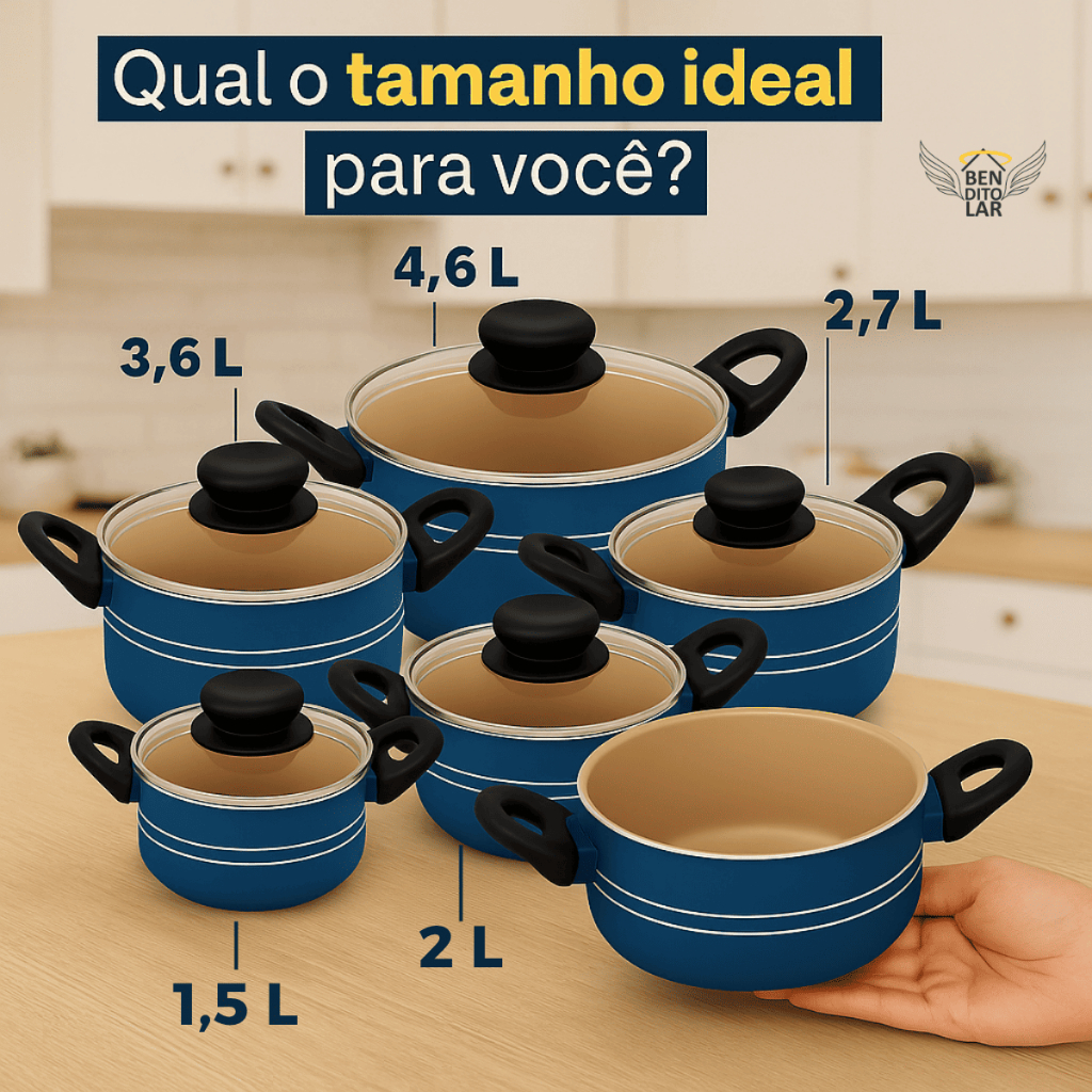 Caçarola Antiaderente Bendito Lar – Linha Araflon ⚠️ Atenção: Escolha o tamanho desejado nas variações do anúncio. Cor: azul/creme 📦 Envio rápido | Nota fiscal | Garantia ⭐ Avaliação 4.9 pelos nossos clientes 👉 Escolha o tamanho e a quantidade na variação! 💡 Perfeita para o dia a dia Produzida em alumínio com 5 camadas de antiaderente (Selo A – INMETRO), garantindo preparo com menos óleo, fácil limpeza e excelente durabilidade. Possui tampa de vidro temperado com saída de vapor e cabos de baquelite, que não esquentam. 🔹 Tamanhos disponíveis ✔ Nº16 – 1,5 L ✔ Nº18 – 2,0 L ✔ Nº20 – 2,7 L ✔ Nº22 – 3,6 L ✔ Nº24 – 4,6 L 📏 Medidas detalhadas • Nº16 – Ø16 cm | Altura total: 13,6 cm (corpo + tampa) • Nº18 – Ø18 cm | Altura total: 14,3 cm (corpo + tampa) • Nº20 – Ø20 cm | Altura total: 15,0 cm (corpo + tampa) • Nº22 – Ø22 cm | Altura total: 16,2 cm (corpo + tampa) • Nº24 – Ø24 cm | Altura total: 17,4 cm (corpo + tampa) ✅ Benefícios • Cozimento com menos óleo • Fácil de limpar • Alta durabilidade • Tampa de vidro com saída de vapor • Cabos que não esquentam ✨ Deixe sua cozinha mais prática e bonita com a qualidade da Linha Araflon! 🔎 Tags (SEO) caçarola antiaderente, caçarola com tampa de vidro, caçarola avulsa, panela antiaderente, panela com tampa, panela alumínio, linha araflon, bendito lar, 5 camadas antiaderente, selo A inmetro, tampa vidro temperado, cabo baquelite, panela fácil de limpar, caçarola família, caçarola uso diário, utensílios de cozinha, cozinha prática, panela durável, caçarola várias medidas, panela leve, saída de vapor