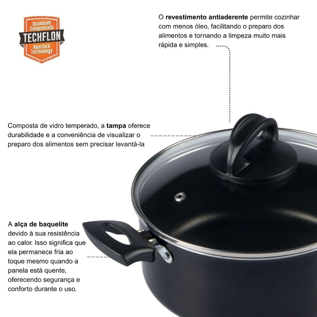 Caçarola Antiaderente Tampa Vidro 20Cm 2L Preto Nacional