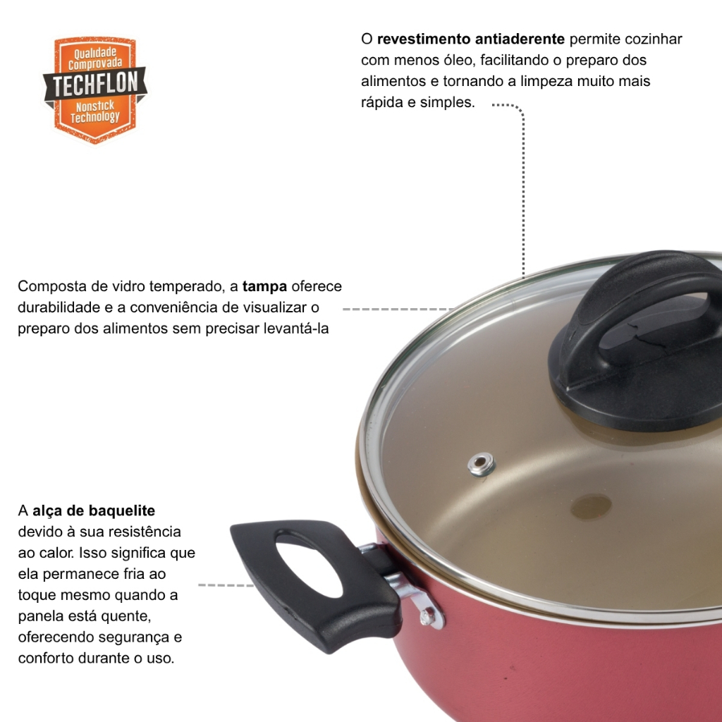 Caçarola Antiaderente Tampa Vidro 24Cm 4L Cereja Nacional