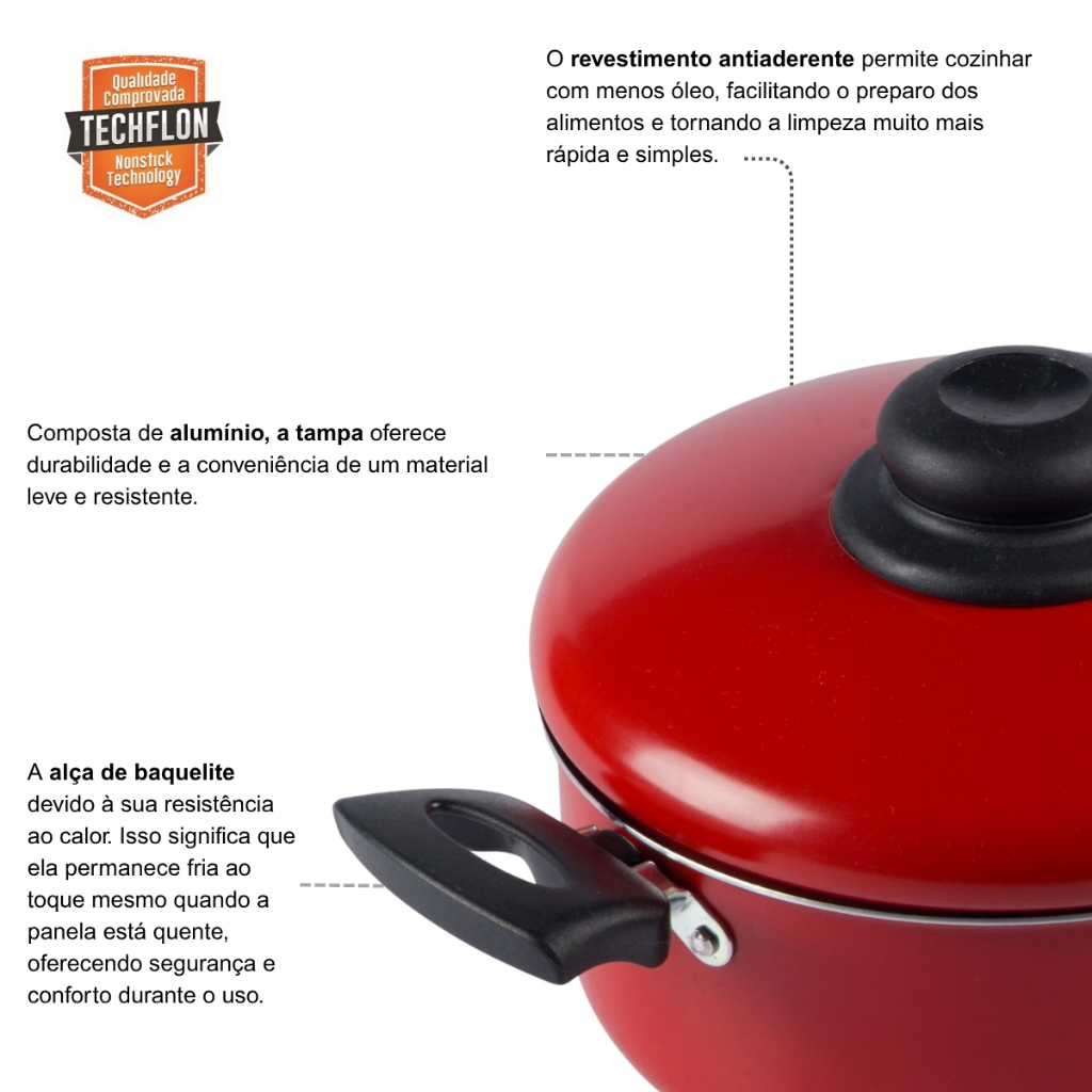 Caçarola Avulsa Antiaderente Com Tampa Alumínio N°18 1,9 Litros Vermelha
