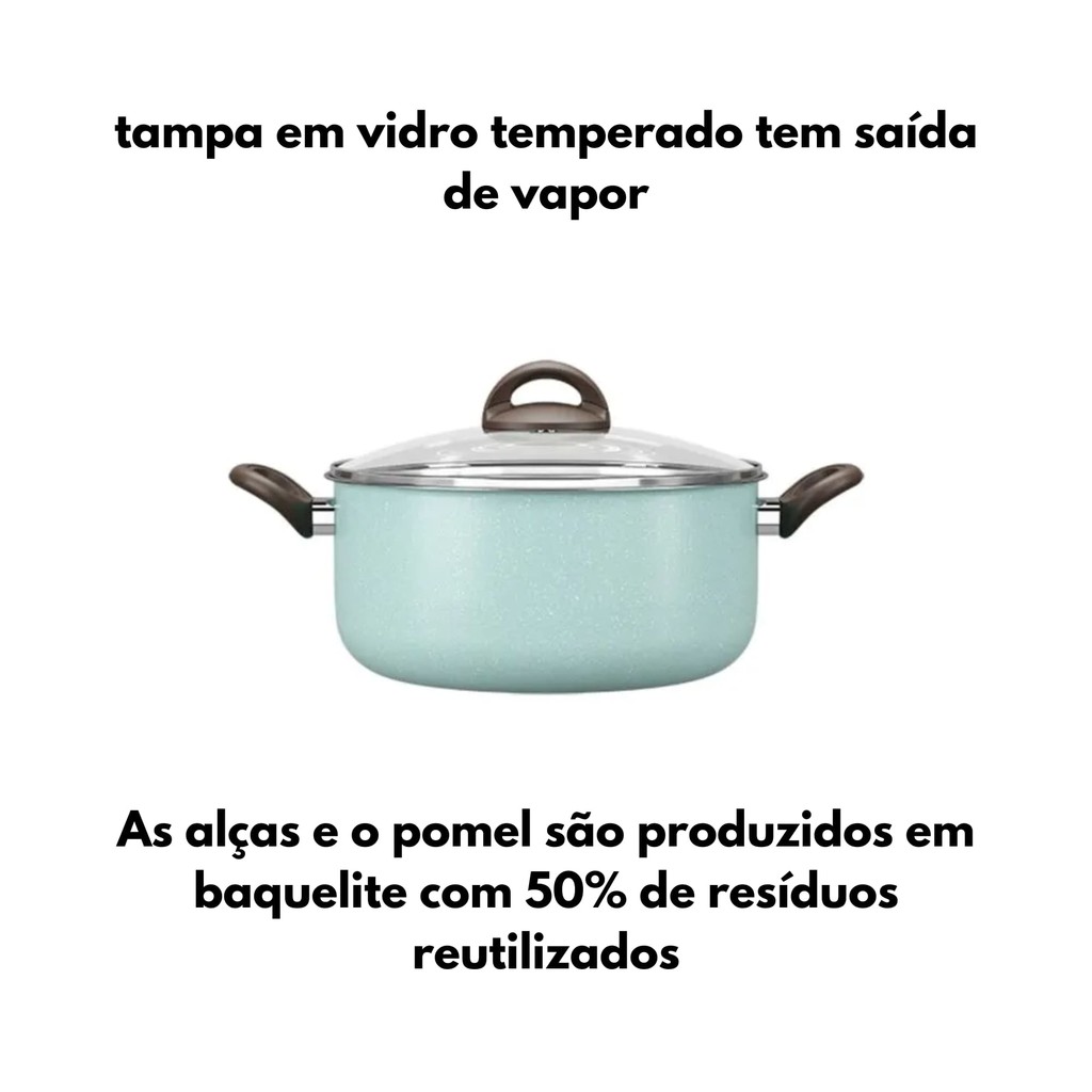 Transforme sua cozinha em um espaço de criação e sabor com a Caçarola Brinox Ceramic Life Suprema. Com seu design moderno e funcionalidades inovadoras, cozinhar nunca foi tão prazeroso. Veja o que torna esta caçarola indispensável: Revestimento Antiaderente de Cerâmica: Diga adeus aos alimentos grudados e ao excesso de óleo. O revestimento antiaderente de cerâmica garante um cozimento uniforme e uma limpeza rápida e fácil. Tampa de Vidro Resistente: Acompanhe o cozimento sem perder calor. A tampa de vidro temperado é robusta e permite que você veja seus pratos ganhando vida. Capacidade Ideal: Com 3,5 litros e 22cm de diâmetro, esta caçarola é perfeita para preparar refeições para toda a família ou para aquele jantar especial com amigos. Cor Vibrante: A tonalidade verde suprema adiciona um toque de elegância e vivacidade à sua cozinha, destacando-se entre seus utensílios. Alças Confortáveis: Projetadas para segurança e conforto, as alças permitem um manuseio seguro, mesmo quando a caçarola está cheia. Versatilidade: Ideal para uma variedade de pratos, desde sopas e ensopados até risotos e massas. Use-a no fogão ou no forno e surpreenda-se com a versatilidade. Características - Marca: Brinox - Modelo: 7245/364 *Imagens Meramente Ilustrativos* Especificações: a Caçarola com Tampa 22 cm da Linha Ceramic Life Suprema/Brinox tem 22 cm de diâmetro por 11 cm de altura e capacidade para 3,5 L. O cabo e o pomel são produzidos em baquelite 50% regenerado. A pintura é na cor Verde com grânulos Brancos e o revestimento interno é com antiaderente Mineral Resist. A tampa em vidro temperado tem saída de vapor. Conteúdo da Embalagem: - 01x Caçarola 3,5L Revestimento Antiaderente Ceramic Life Suprema Verde Brinox Caçarola - Panela - 22cm - Tampa - C/ - Antiaderente - Vidro - De - Indução - 3,5l - Tramontina - 22 - Pro-flon - Mônaco - Com - Cacarola - Cerâmica - Brinox - Grossa
