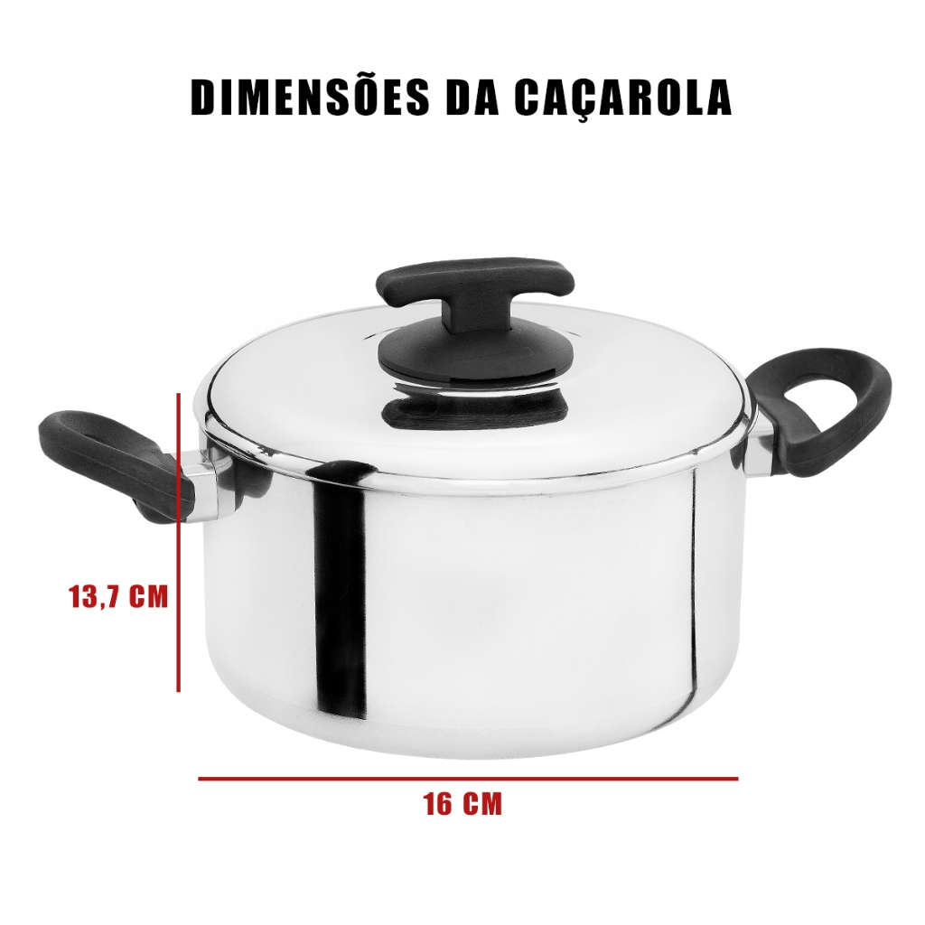 COMPOSIÇÃO 1 - Caçarola Panela Polida 16 Super Forte Alumínio Fort-lar MEDIDAS - Diâmetro ø16 - Dimensões (Comprimento x Largura x Altura) 28,7 X 16 X 13,7 CM - Peso 0,634 Kg - Espessura 2,60mm - Capacidade 1,7 Litros ESPECIFIÇÕES TÉCNICAS DO PRODUTO - Liga de Alumínio certificada; - Cabo de Baquelite anti-chama; - Acabamento Polido; - Produto de qualidade. - Reg. INMETRO 002 129/2019 CUIDADOS ANTES DO USO E CONSERVAÇÃO DO PRODUTO - Remova a etiqueta e lave para retirar possíveis excessos de resíduos de fabricação; - Alimentos como sal, alho e molho de tomate, quando ficam muito tempo em contato com o utensílio podem ocasionar manchas e corrosão. SEGURANÇA NO USO DO PRODUTO - Não deixe os cabos virados para fora do fogão; - A chama não deve ultrapassar a base da peça; - Utilize luvas térmicas no manuseio de utensílios quentes; - É recomendável o reaperto dos parafusos periodicamente; - Produto para uso doméstico em fogão a gás. GARANTIA - Garantia 90 dias em caso de defeitos de fabricação. ENVIO - Produtos em estoque a pronta entrega. PRAZO DE ENTREGA E VALOR DO FRETE - O prazo de entrega varia de acordo com o CEP do destino; - Consultar o prazo de entrega e o valor do frete direto no link do produto. IMPORTANTE - Antes de comprar, certifique-se de que seus dados estejam corretos, pois serão com eles que concluiremos a venda; - Tire todas as dúvidas no campo de Perguntas e Respostas ou Chat antes de finalizar a compra. SERÁ UM PRAZER ATENDE-LOS