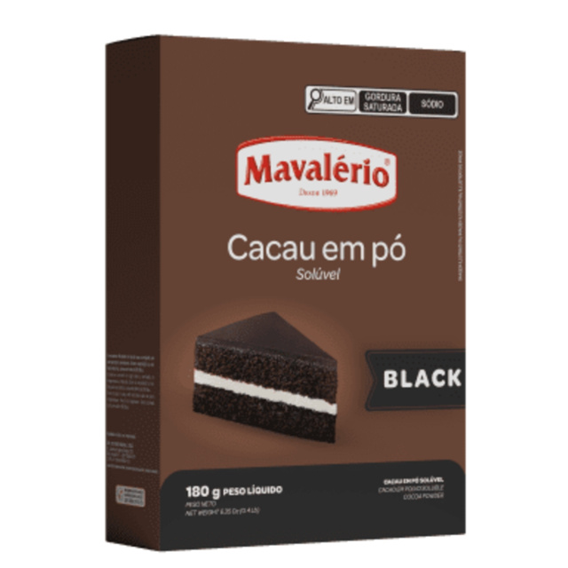 | Cacau em Pó Solúvel Black 180g Mavalério Cacau Intenso Confeitaria ... este produto | R$ 36,99 | — | 4.9/5 | 21 |