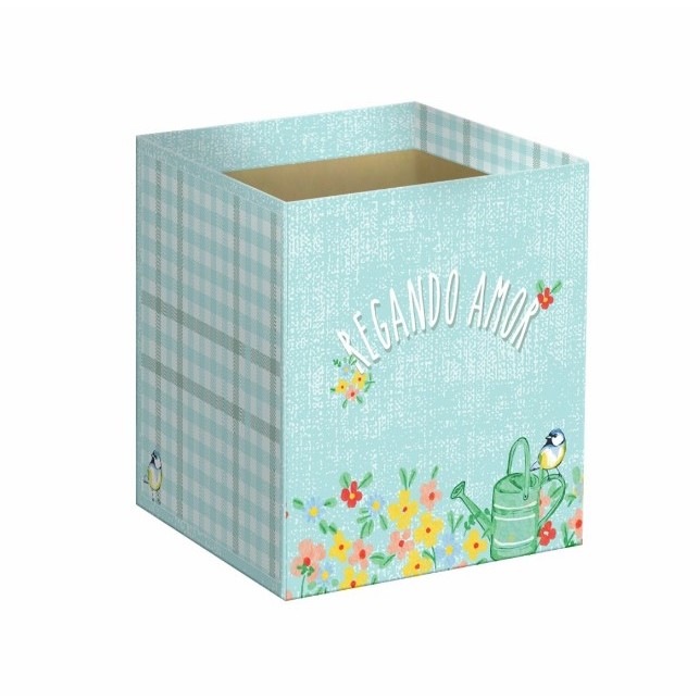 Cachepot quadrado fabricado em papel cartão duplex, ideal para presentes e arranjos. Pode ser usado na montagem de cestas de presente, arranjos de flores (naturais ou artificiais), kits personalizados, lembrancinhas e até como organizador de pequenos objetos. O produto vai desmontado, sua montagem é simples e fácil, só dobrar e encaixar, não precisa colar - Quantidade: 5 unidades - Tamanhos: 11m x 11cm x 11cm - Material: Papel cartão duplex e face simples onda E As cores podem apresentar variações conforme tela ou disposito.